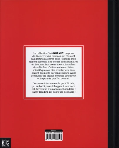 Un livre inspirant de la collection Petit & GRAND pour découvrir la vie de Harry Houdini. À travers un texte simple et des illustrations douces, l’enfant apprend que la curiosité, le travail et la persévérance permettent de réaliser de grandes choses 🎩✨