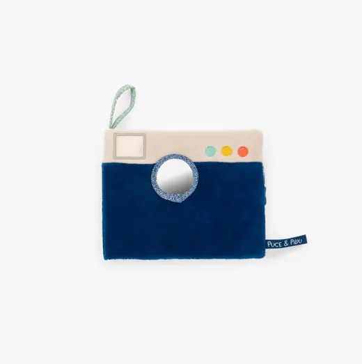 Offrez à votre bébé son tout premier album photo, aussi ludique que réconfortant ! Conçu sous la forme d’un appareil photo en velours, ce livre photo tout doux de la collection Puce & Pilou permet d’emporter ses souvenirs préférés partout avec soi. Grâce à ses 9 pochettes plastifiées, il protège et met en valeur les images des visages familiers qui réconfortent bébé au quotidien.