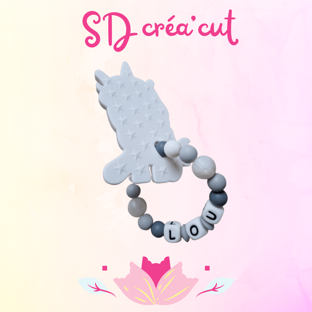 Anneau de Dentition en Silicone Licorne Grise – Un Soulagement Doux et Magique pour Bébé 🦄✨