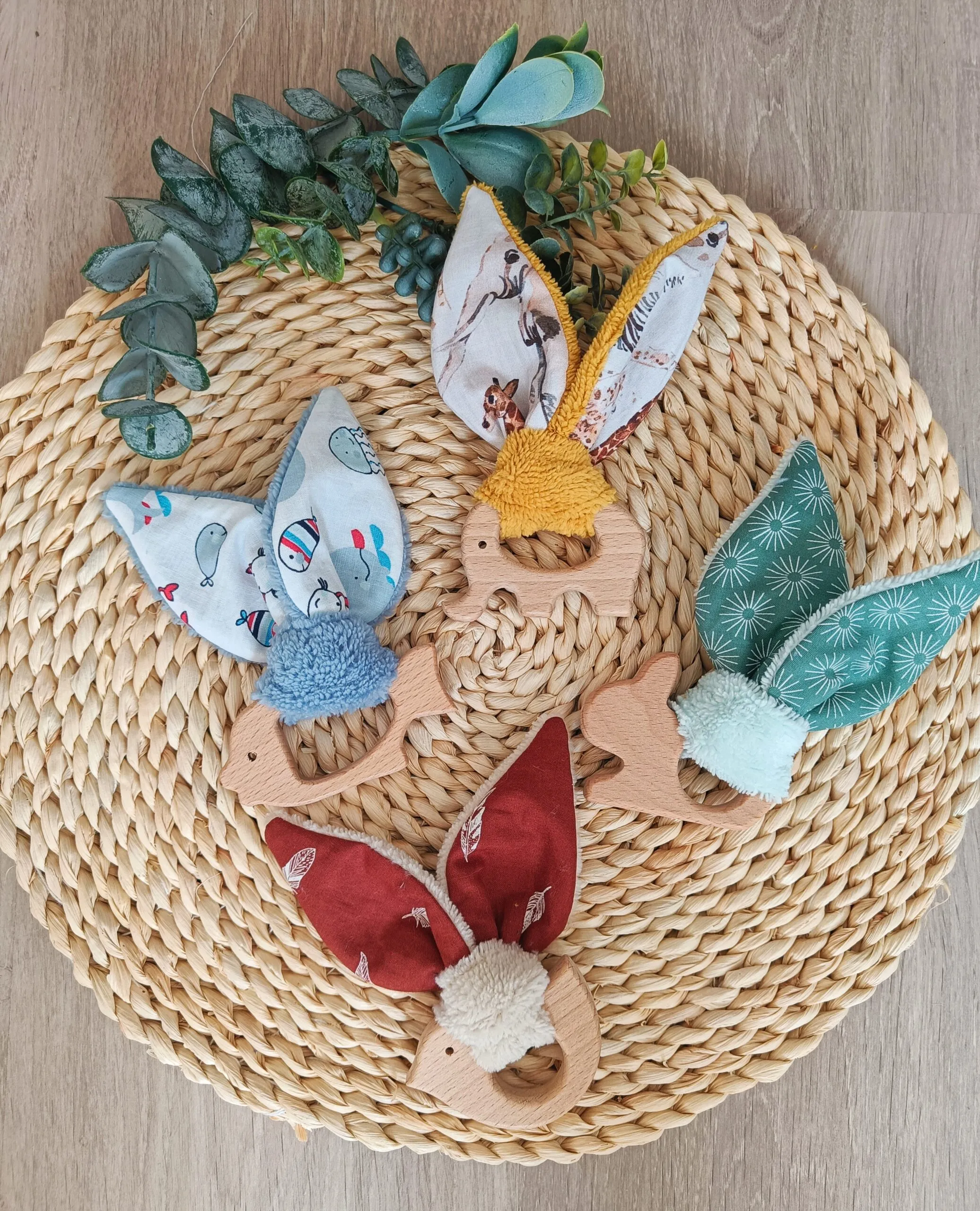 Pensez à mixer votre anneau de dentition lapin avec un jouet d’éveil ou un doudou pour un cadeau original. Regarder aussi les lingettes lavables, qui peuvent être assorties.