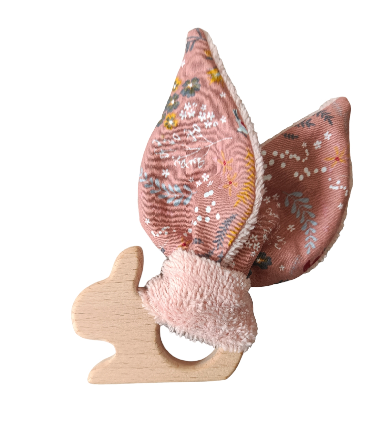 Anneau de dentition lapin avec oreilles. Indispensable allié lorsque bébé commencera à faire ses dents, il soulagera les gencives douloureuses. Format de l’anneau adéquate, ni trop petit, ni trop gros, idéal pour les petites mains.
