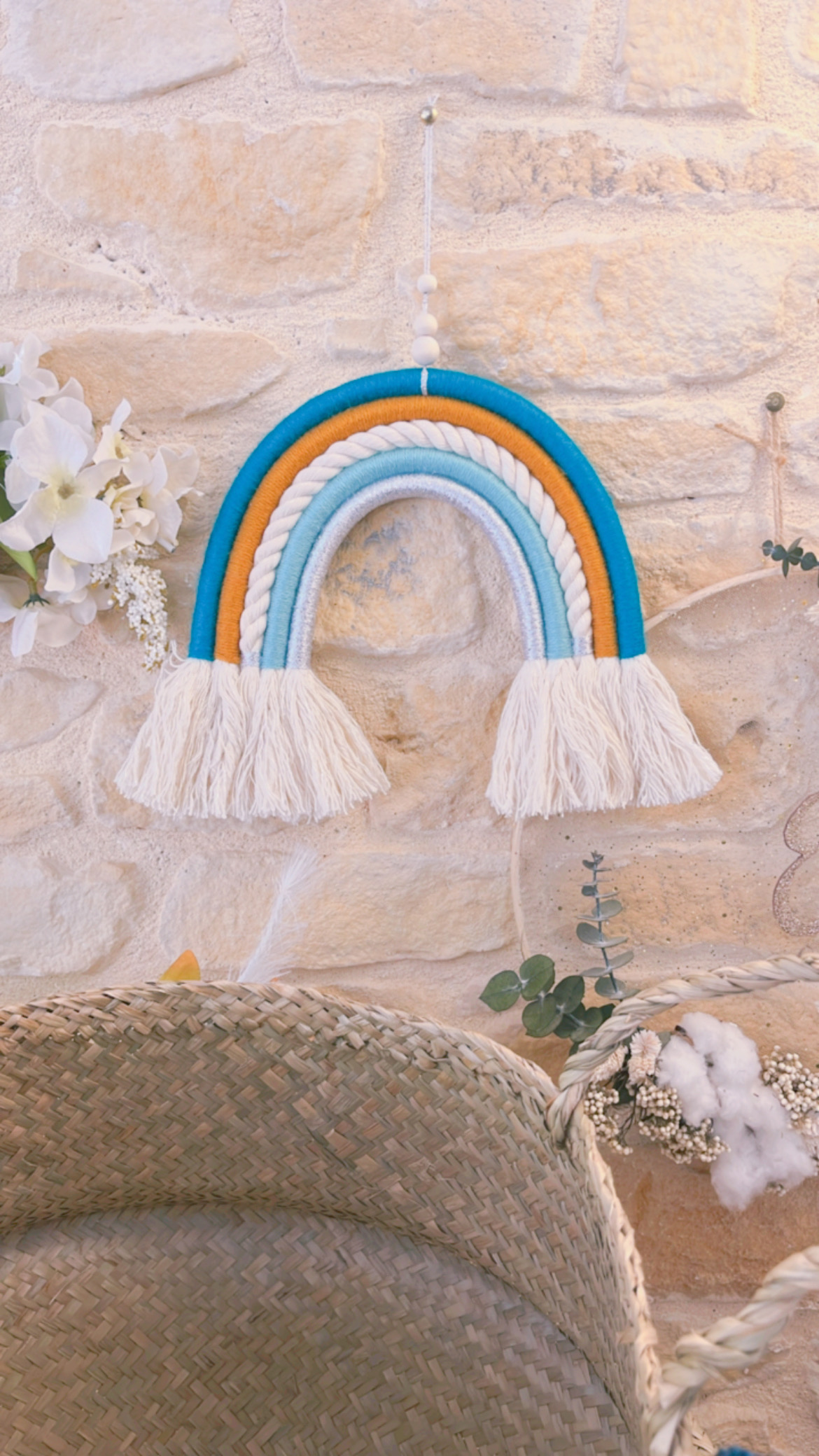 Arc-en-ciel en macramé, laine et corde. Vous pourrez choisir la taille que vous souhaitez (avec supplément)
