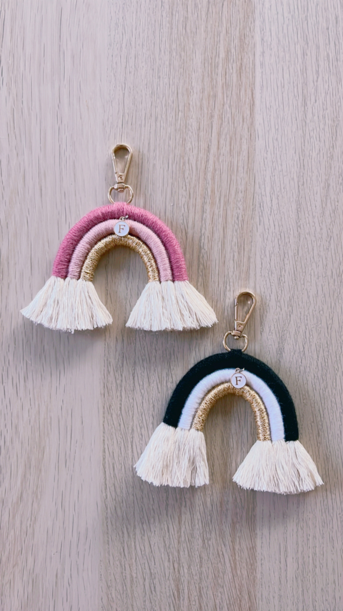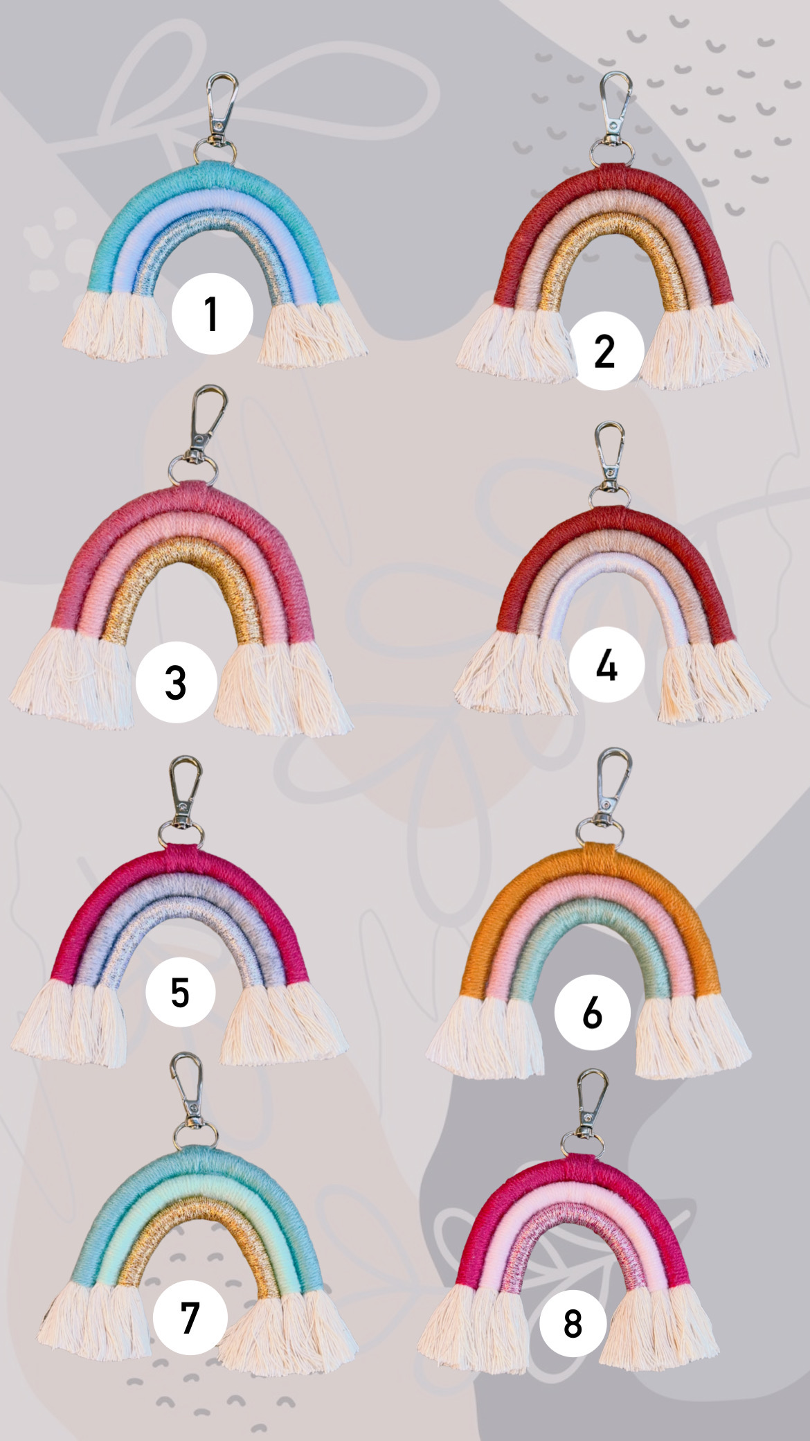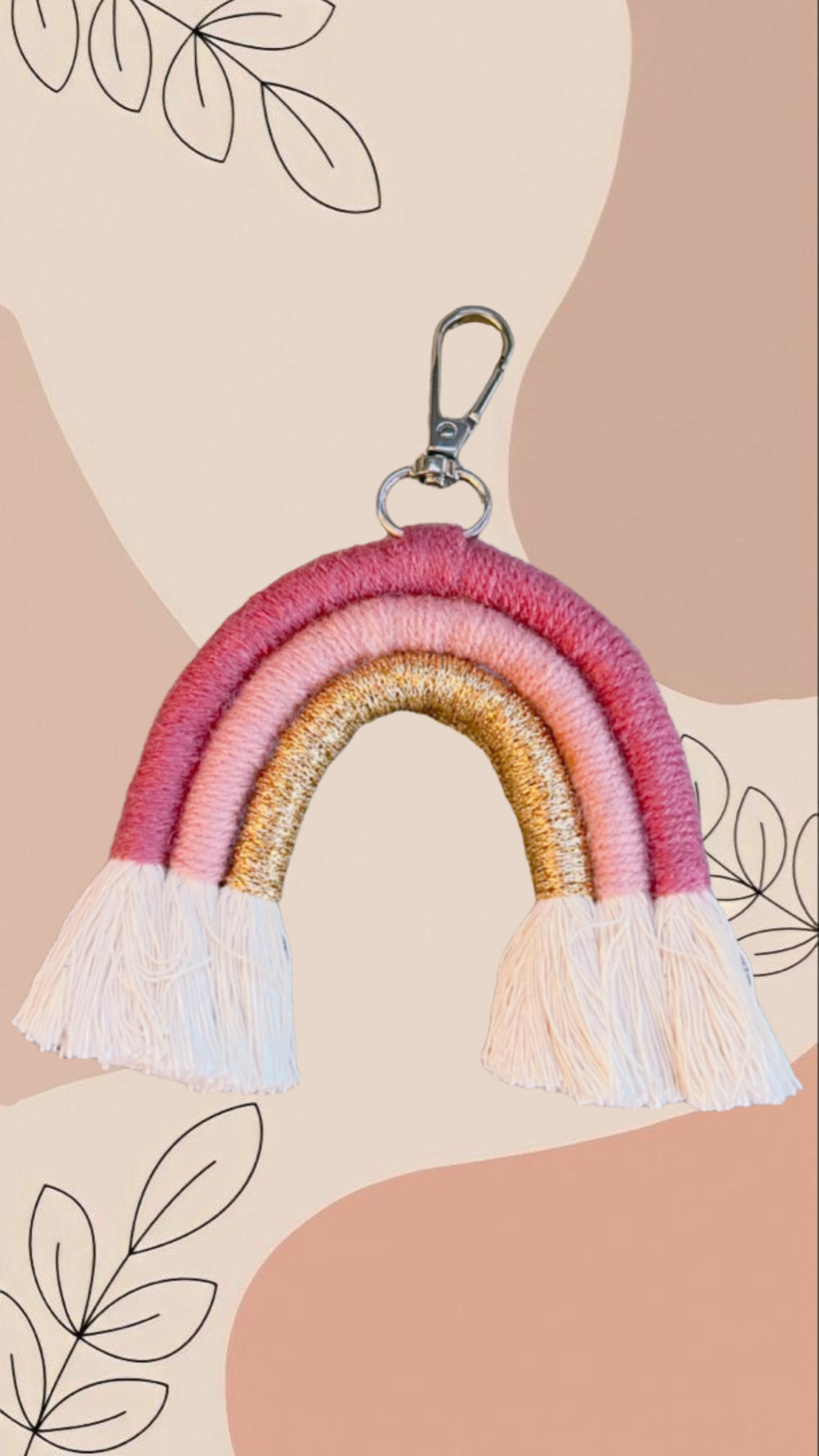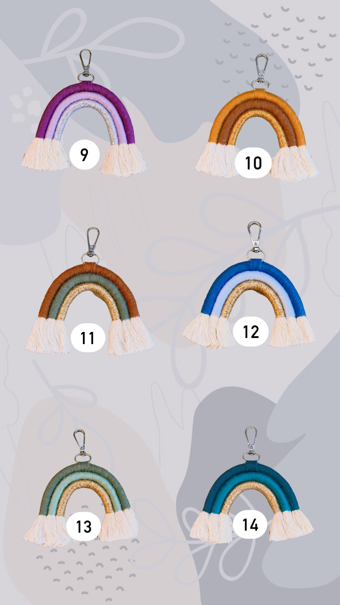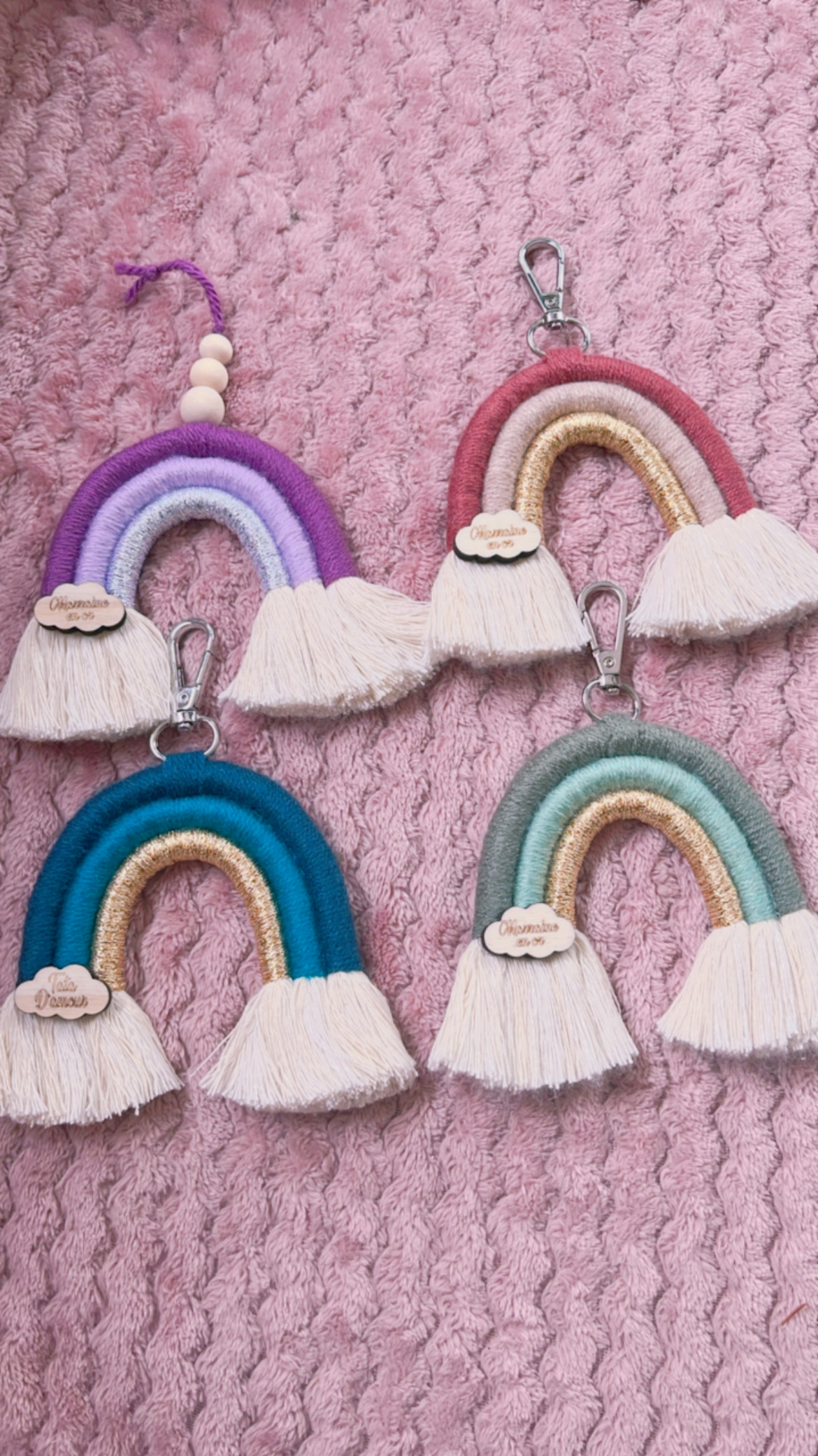 Arc-en-ciel en macramé, laine,corde, colle et porte-clés. Vous pourrez choisir les couleurs que vous souhaitez ou un modèle existant sur 3 rangées.