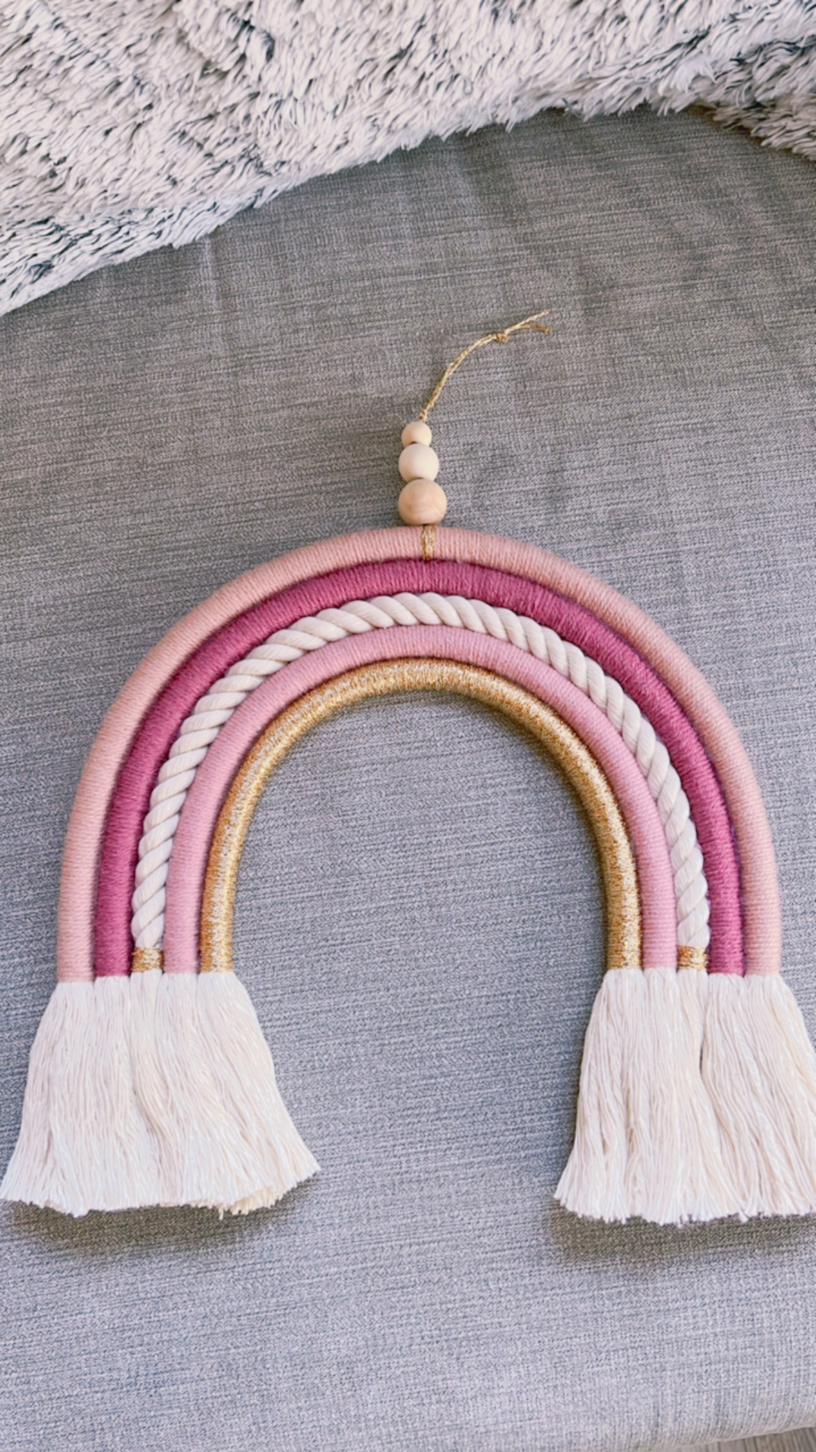 Arc-en-ciel en macramé, laine et corde. Vous pourrez choisir la taille que vous souhaitez (avec supplément)
