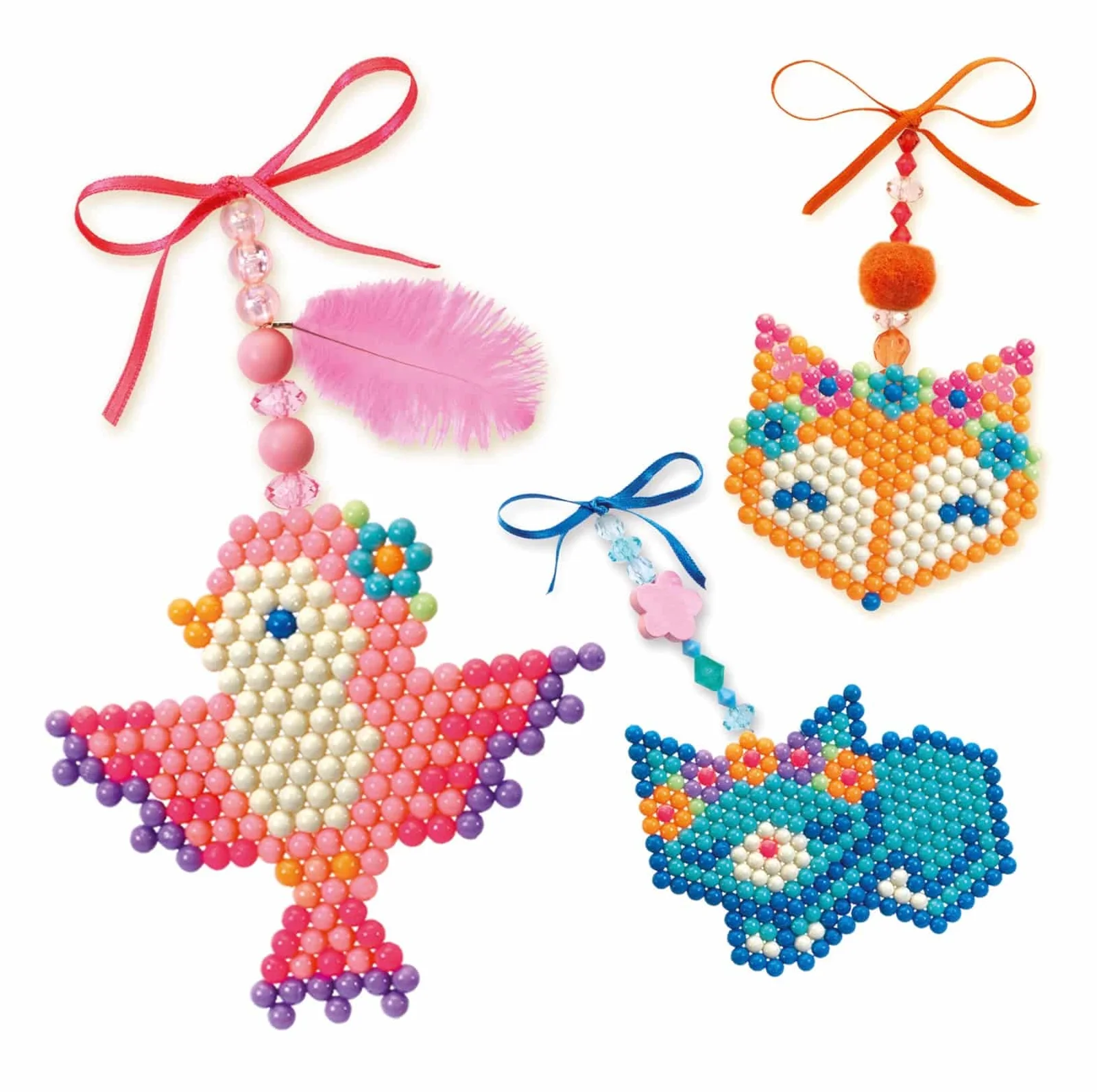 GrĂące Ă ce kit complet, ils rĂ©alisent trois suspensions en forme d’adorables animaux : oiseau, papillon, ou petit renard⊠Il suffit de placer les billes une Ă une sur une plaque alvĂ©olĂ©e transparente, de vaporiser un peu d’eau, et la magie opĂšre : les billes fusionnent en sĂ©chant pour former de jolies formes solides.