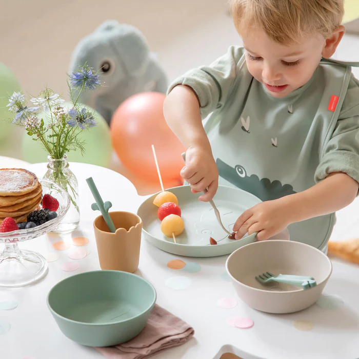 L’amusant Elphee – Rose surgit du fond de cette jolie assiette Kiddish en poudre. Conçue pour les repas de tous les jours, elle présente de nombreuses caractéristiques pratiques : elle convient au micro-ondes, passe au lave-vaisselle et est prête à résister à toute épreuve de gravité de la part d’un enfant en bas âge. L’assiette Kiddish recyclable est fabriquée au Danemark. Après d’innombrables repas en famille, fêtes et pique-niques, l’assiette peut être triée par plastique dur et recyclée pour fabriquer de nouveaux produits, tels que des meubles, des chaussures de sport ou des fibres pour la confection de vêtements. Elphee…