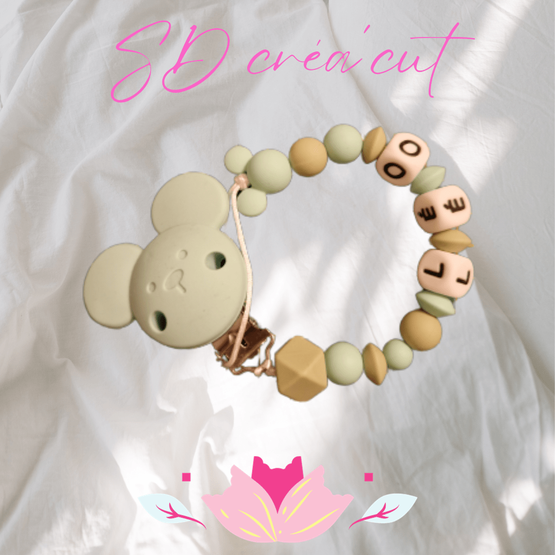 Le nombre de perles est ajusté en fonction du prénom ou du mot choisi, tout en respectant les dimensions réglementaires. Chaque attache-tétine est unique et conçue pour s’adapter aux besoins de votre enfant.