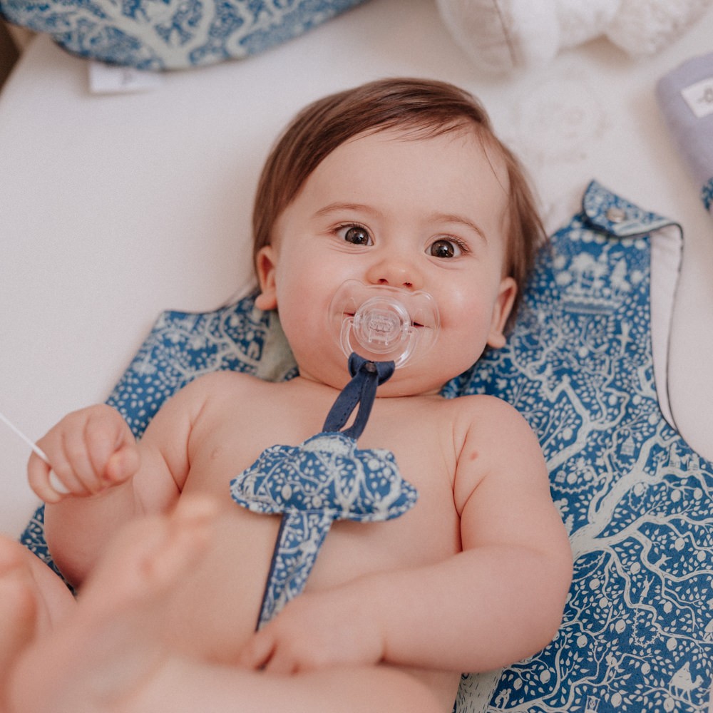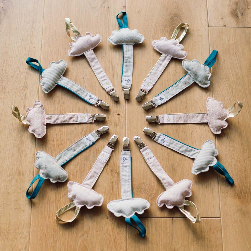 Un accessoire indispensable dans la vie de bébé pour ne jamais perdre sa tétine adorée et ne plus la faire tomber par terre, un joli petit nuage moelleux vient orner cet attache tétine.