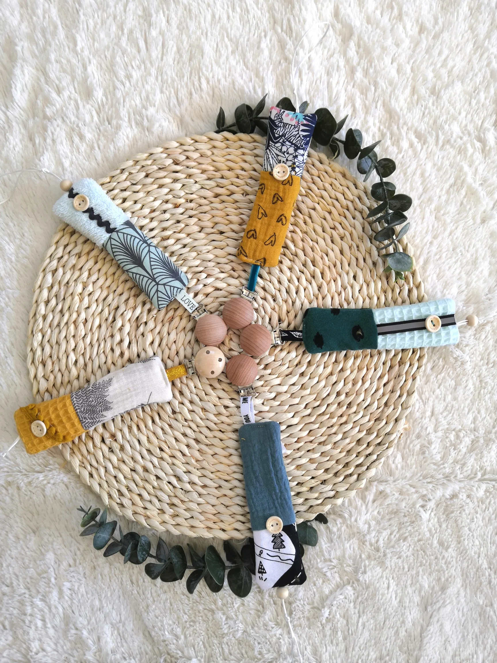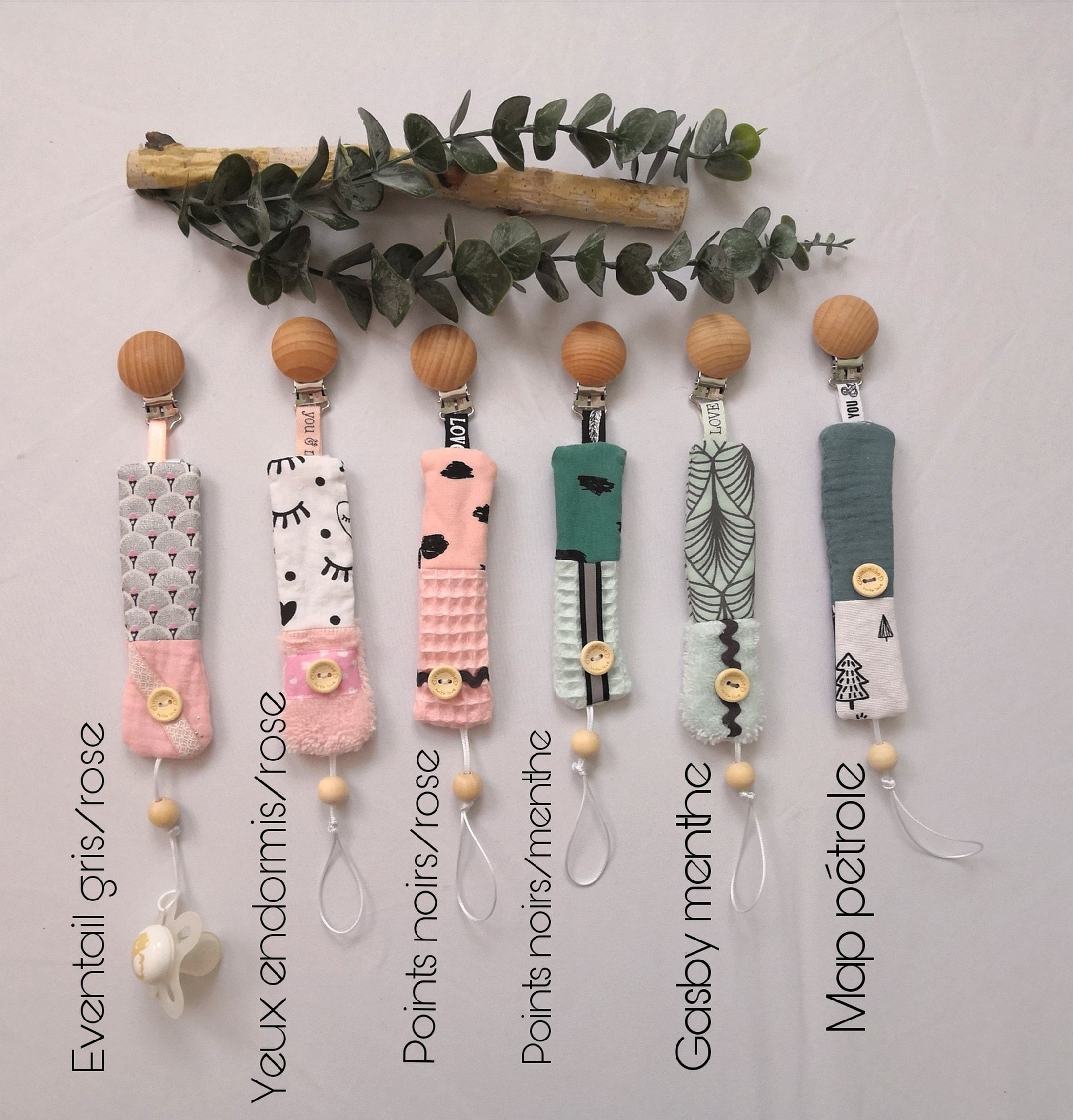 L’attache tétine: l’indispensable bébé lors de vos déplacements! Possibilité de réalisation sur mesure. Me contacter!