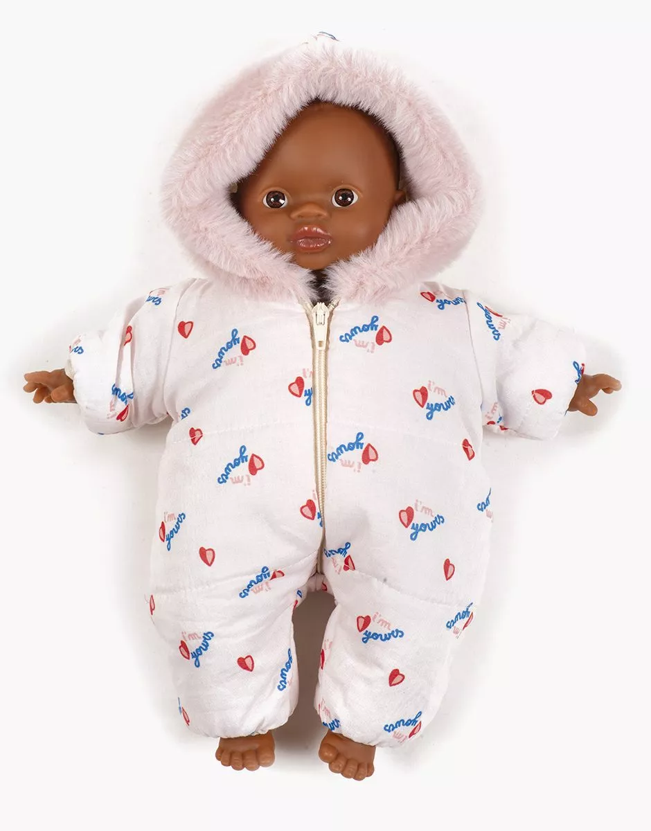 Combinaison Pilote avec capuche à bord en fausse fourrure pour poupées et poupons Minikane Babies 28cm