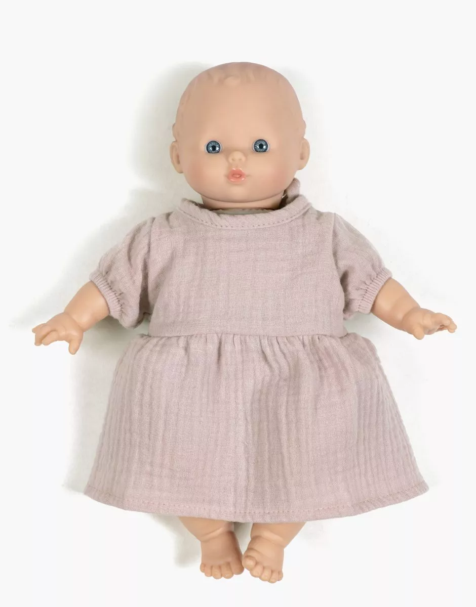 Robe Faustine manches ballons en gaze de coton pour poupée Minikane Babies 28cm.