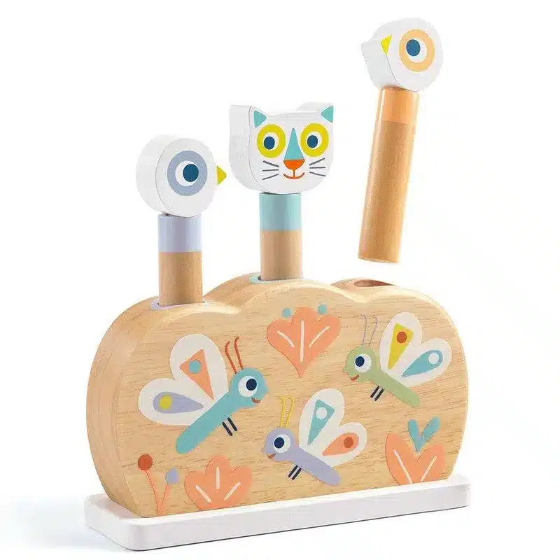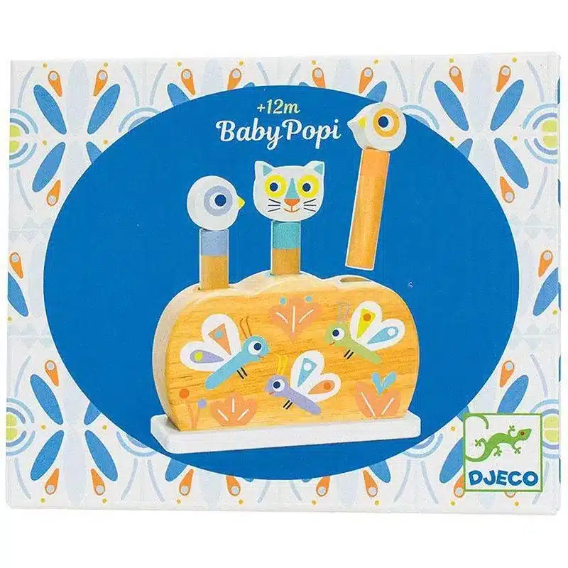 Baby-Popi de Djeco est un jeu Pop-up en bois conçu pour les bébés dès 12 mois. Il stimule la motricité et provoque de jolies surprises à chaque pression !
