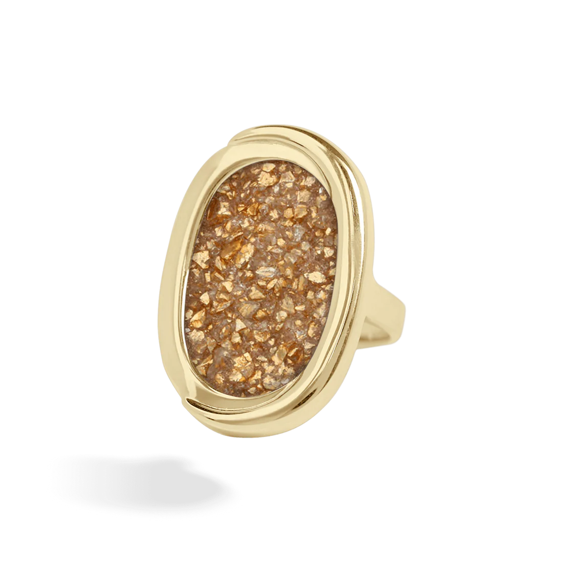 - Bague ovale en plaqué or, incrustation de verre teinté beige