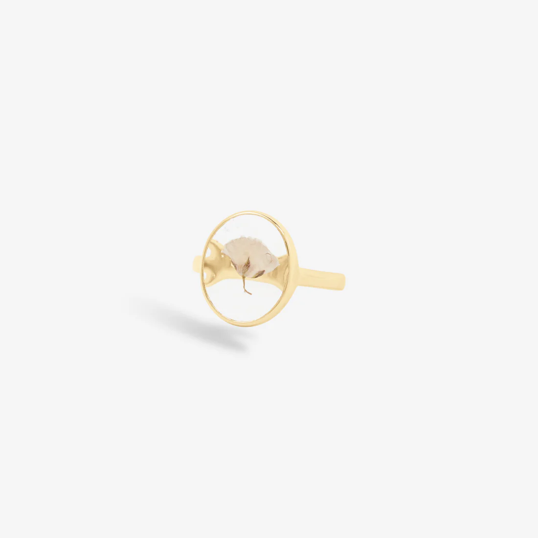 - Bague ronde en plaqué or ornée de fleurs séchées naturelles et résine