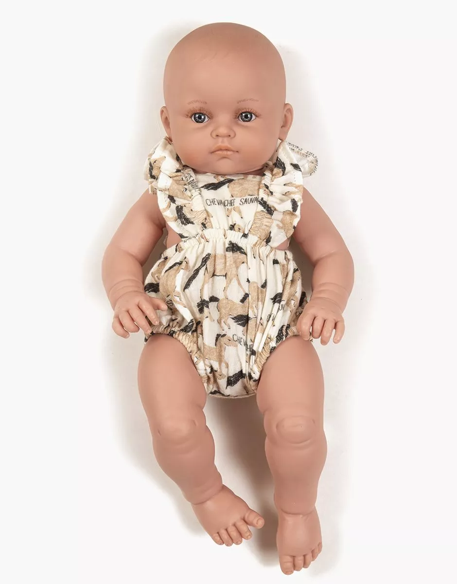 Barboteuse rétro Lou en double gaze pour poupées Minikane Bambinis 47cm.