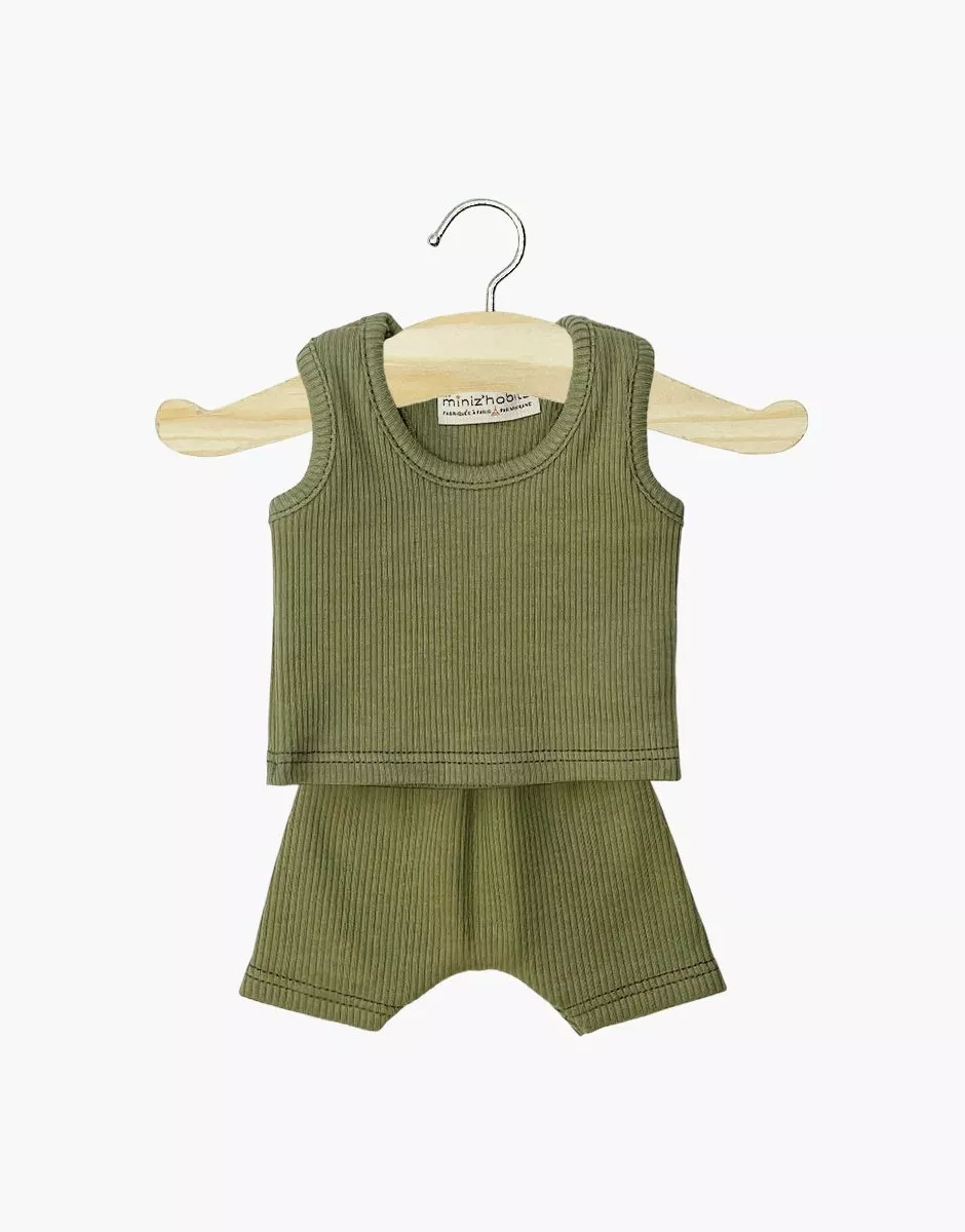 Bambinis – Dessous garçon Marcel en maille côtelée vert olive