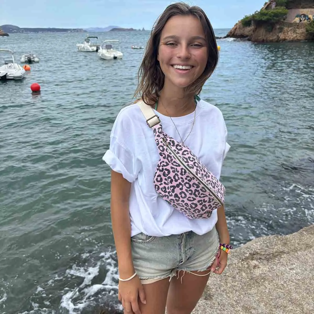Osez l’originalité avec la banane Graou Bubble Pink de Rose in April ! Son imprimé léopard rose apporte une touche audacieuse et féminine à toutes vos tenues.