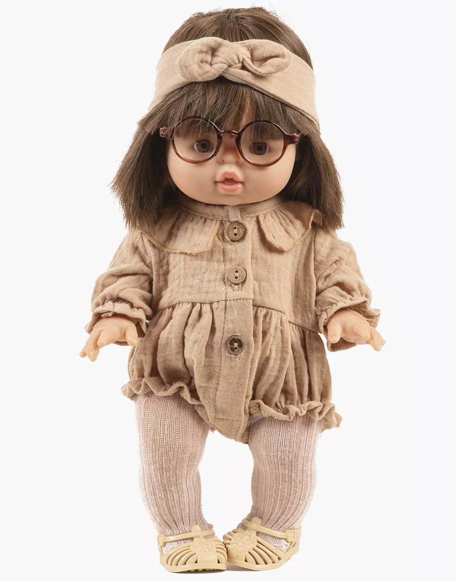 Barboteuse Léonore à manches longues en gaze de coton pour poupées Minikane Gordis 34 & 37cm. Design, développement & confection MADE IN FRANCE. Design, development & tailoring made in France.