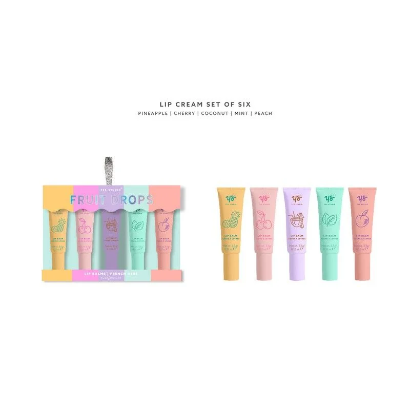 Baumes à Lèvres x5, Yes Studio. Coffret de baumes à lèvres aux délicieux parfums de fruits, idéal pour offrir aux jeunes filles girly.