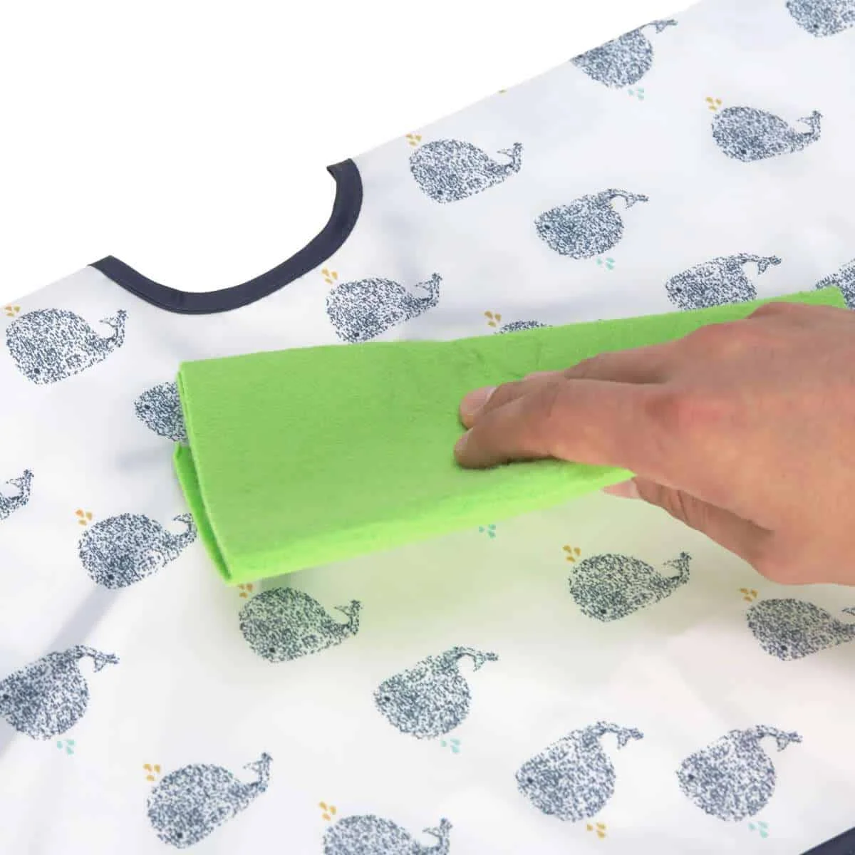 Les bavoirs à manches longues, arborent des motifs de petite baleine bleue. Ils offrent une protection optimale aux petits gourmands qui aiment se tacher tout en dévorant des biscuits.