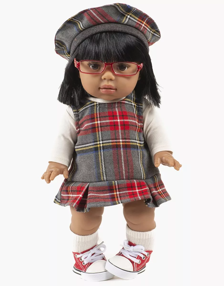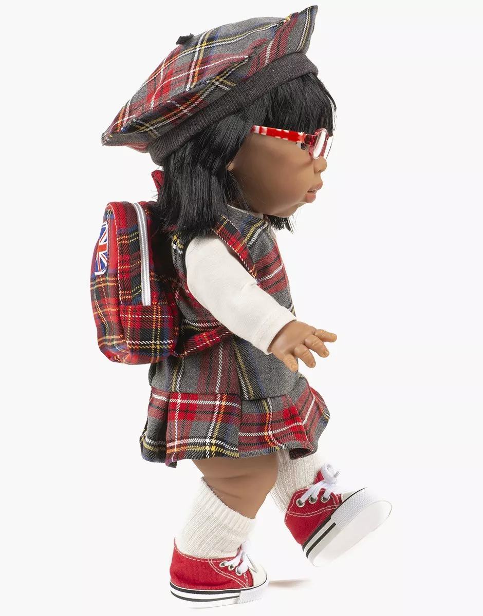 Collection capsule | Back to School in London Béret Ava en tissu à carreaux Tartan pour poupées et poupons Minikane Gordis 34 & 37cm. Design, développement & confection made in France. Design, development & tailoring made in France.