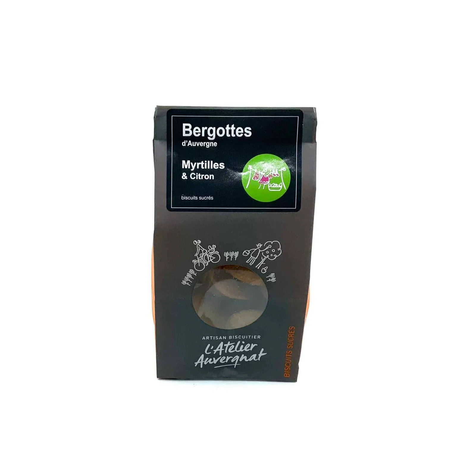 Bergottes d’Auvergne, Myrtilles et Citron, 140g, L’Atelier Auvergnat. Biscuits myrtilles et citron fabriqués en Auvergne.