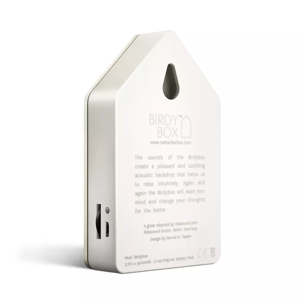 Notre Relaxound Birdybox vous détendra dès la première note. Les sons naturels apaisants vous transportent dans une clairière forestière remplie de chants d’oiseaux joyeux. Le gazouillis vous permettra de vous détendre intuitivement et de vous sentir agréablement libéré. La Birdybox n’a besoin que de 20 secondes pour cela.