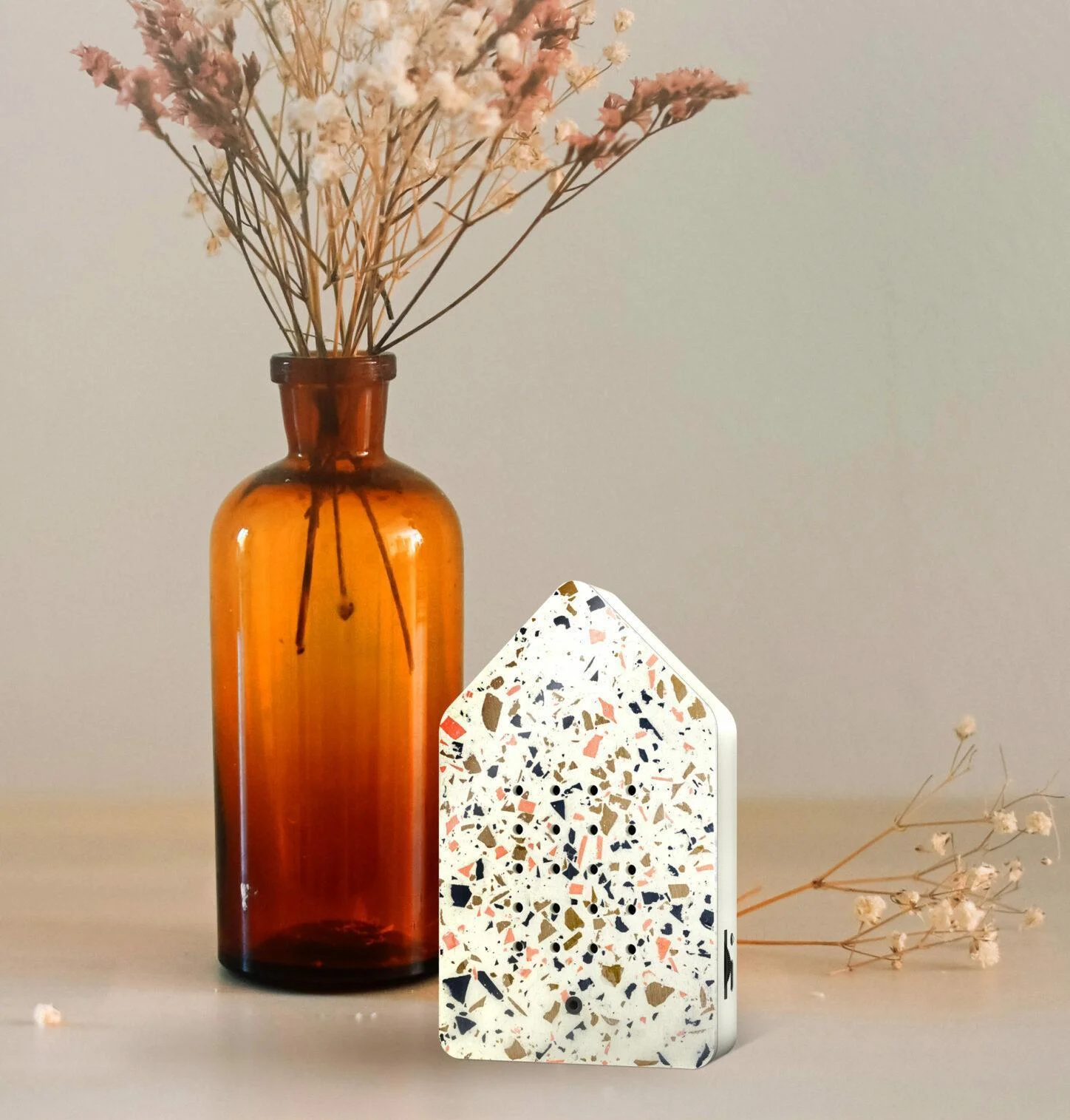 Offrez-vous quelque chose d’exceptionnel. Le noble Terrazzo ornait déjà les villas de l’ancienne Rome. Cette façade de design est captivante avec ses fines granules dans une teinte de toffee. Une composition individuelle de formes et de couleurs confère à chaque façade de design son caractère. Le boîtier de notre Birdybox est fabriqué à partir de ressources renouvelables, et l’emballage est composé à 100% de papier recyclé.