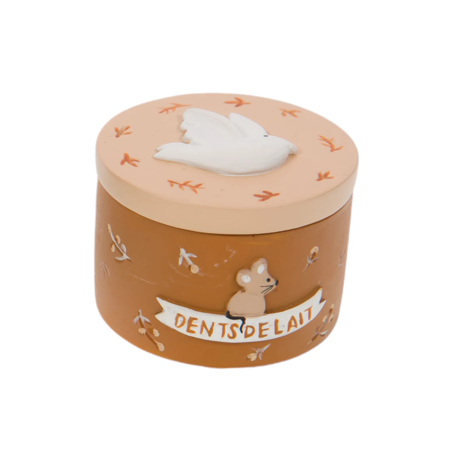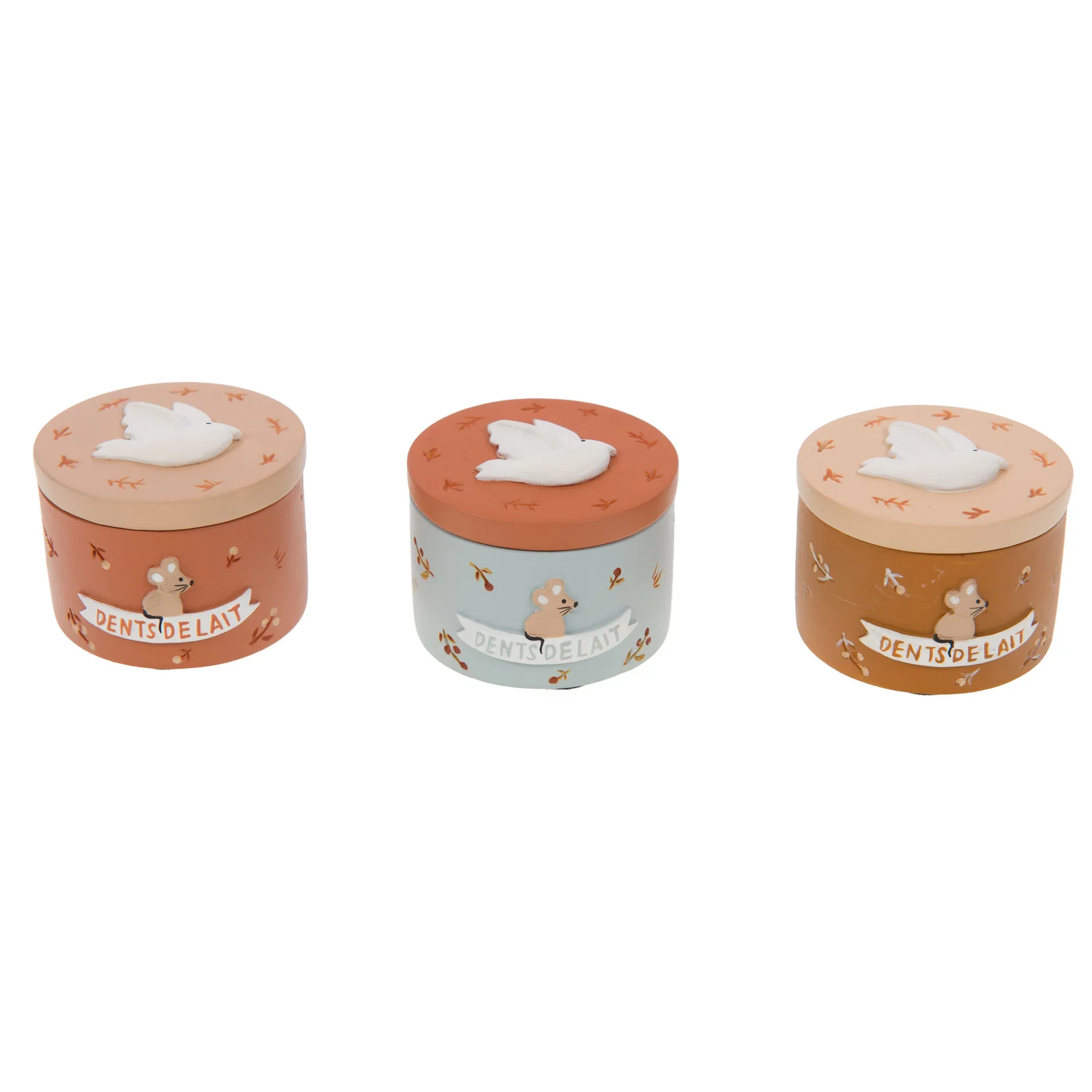 Boîte à dents de lait disponible en trois coloris : terracotta, bleu et marron. Cette boîte est un moyen charmant et pratique de conserver les dents de lait de votre enfant, tout en ajoutant une touche décorative à sa chambre.