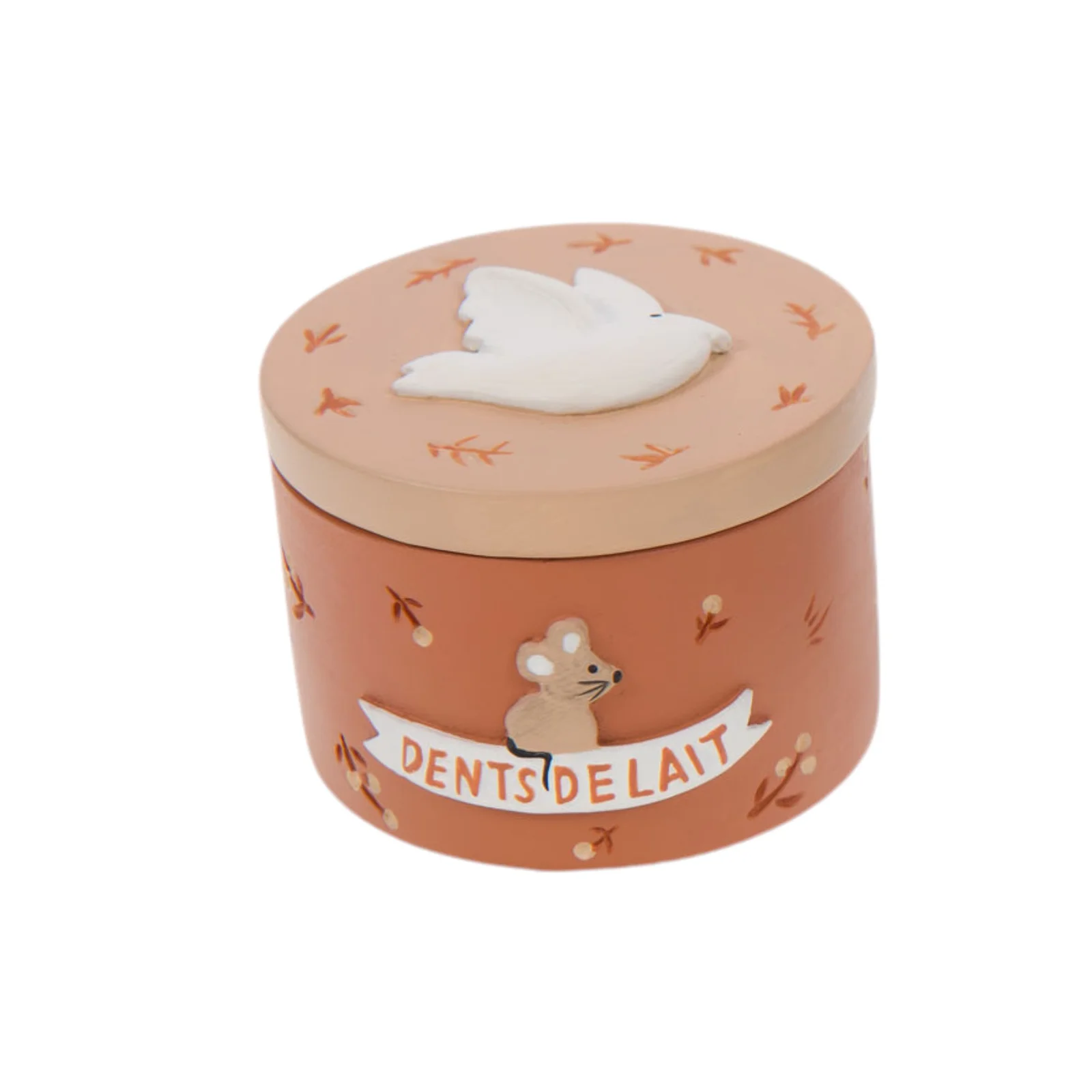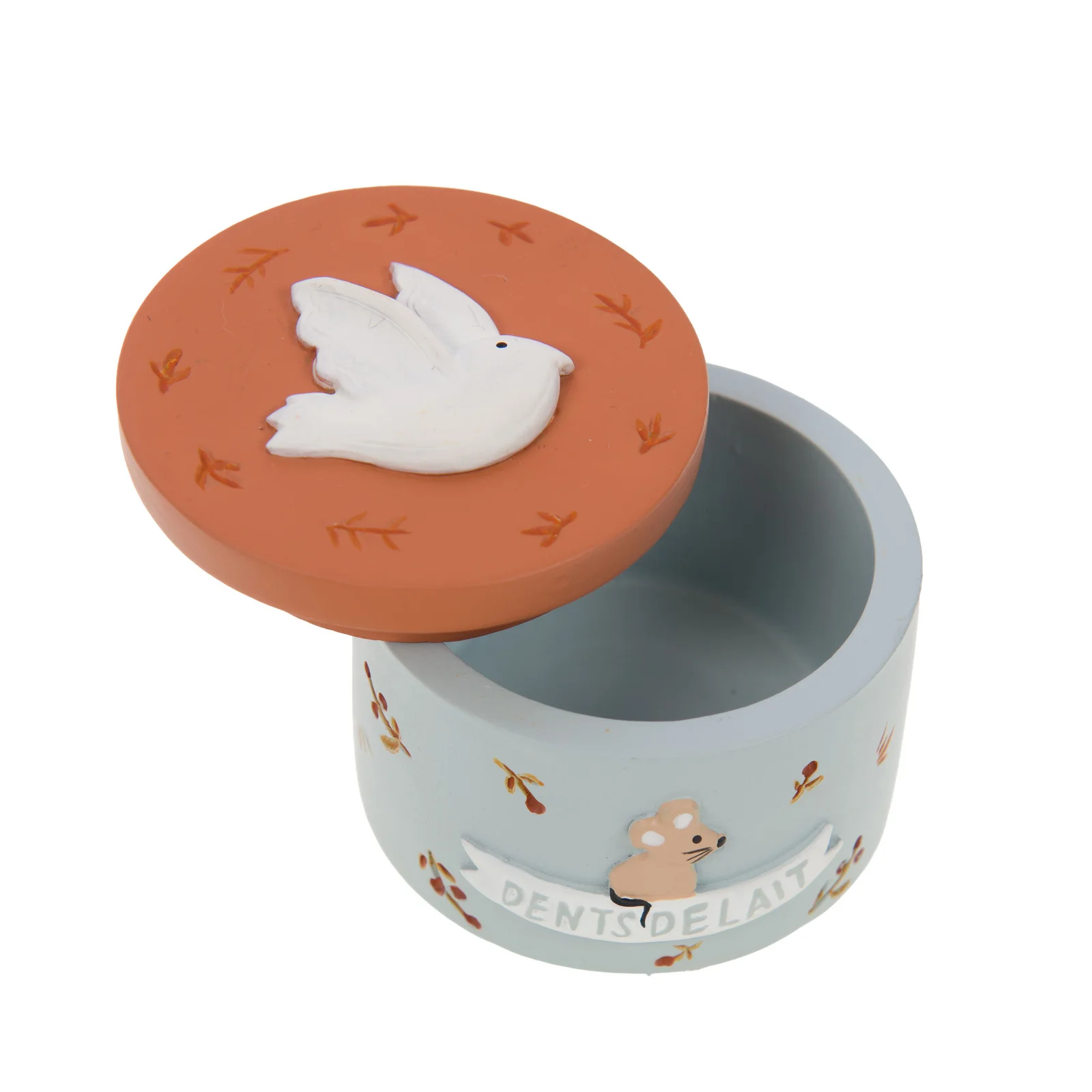 Boîte à Dents Birdy (différents coloris). Cette boîte à dents de lait se décline en terracotta, bleu et marron. Elle allie style et fonctionnalité, faisant d’elle un accessoire indispensable pour préserver les souvenirs d’enfance avec charme.