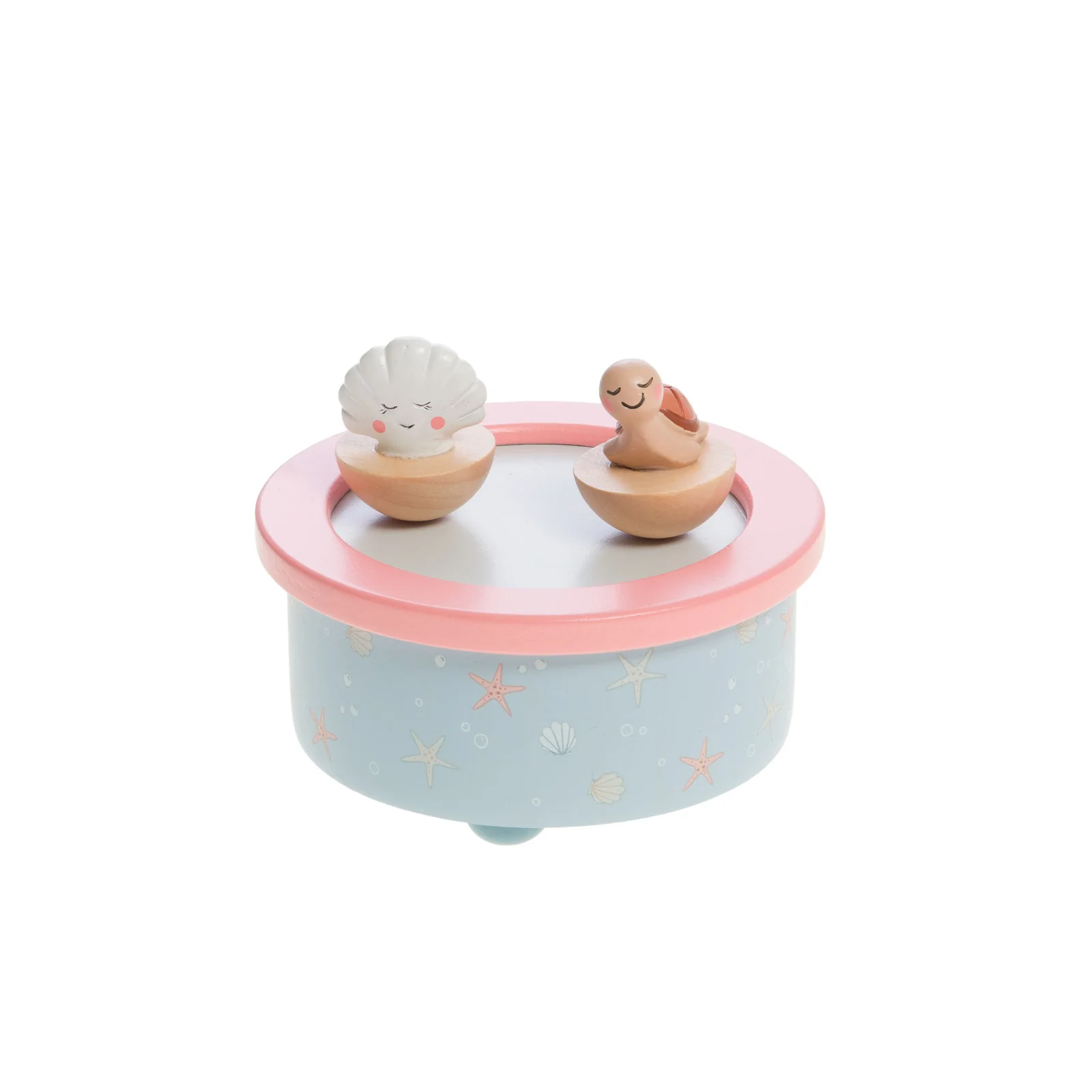 Craquez pour la douceur de la Boîte à Musique Lulu de Cades Design, une adorable boîte musicale décorée d’une charmante petite tortue et d’un coquillage qui séduiront instantanément les enfants. Avec son design délicat et sa mélodie douce, elle apaise les tout-petits lors des moments de repos, tout en apportant une note chaleureuse et raffinée à leur chambre.