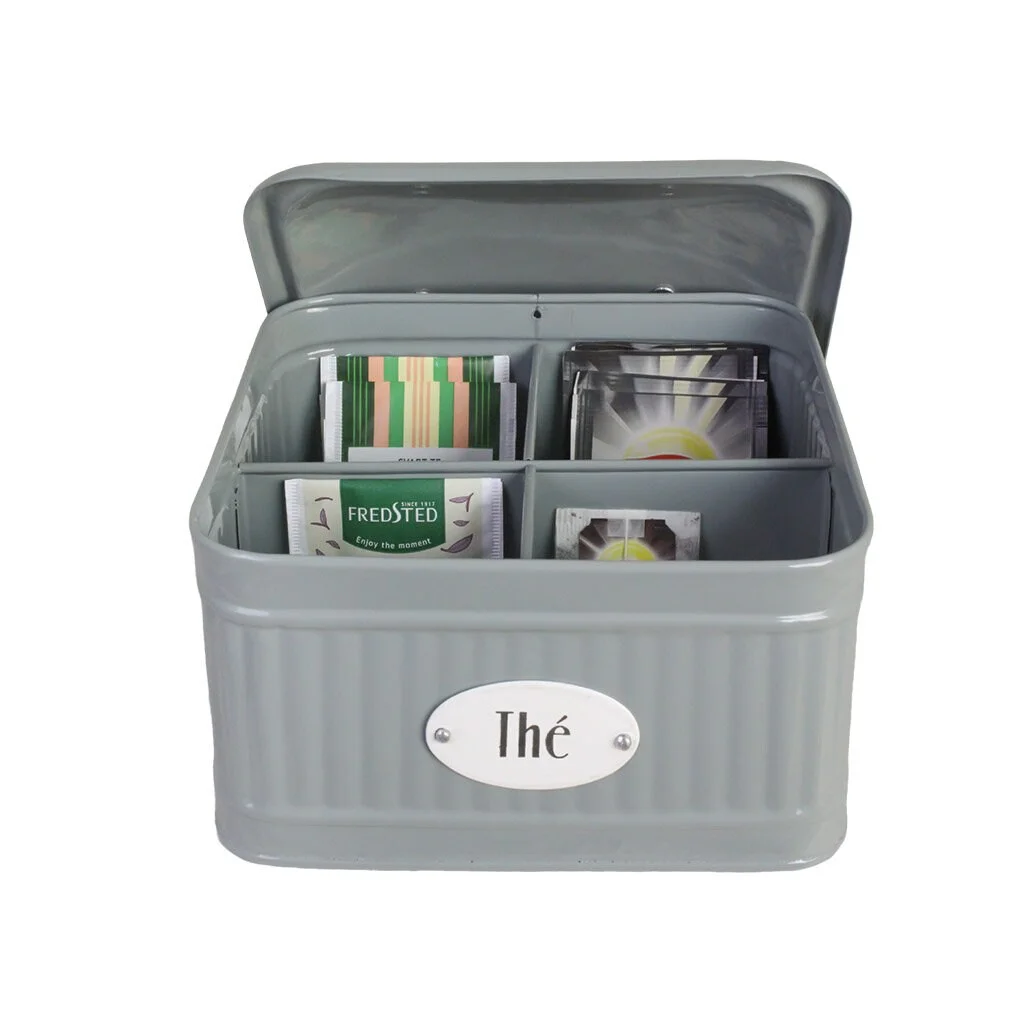 Boîte à Thé Hugo Verte Organisez vos thés avec élégance grâce à la boîte à thé Hugo Verte. En fer robuste, elle dispose de compartiments pratiques pour ranger plusieurs variétés de thé. Son design vert raffiné apporte charme fonctionnalité à votre cuisine. Dimensions : 17 × 17 × 13 cm .