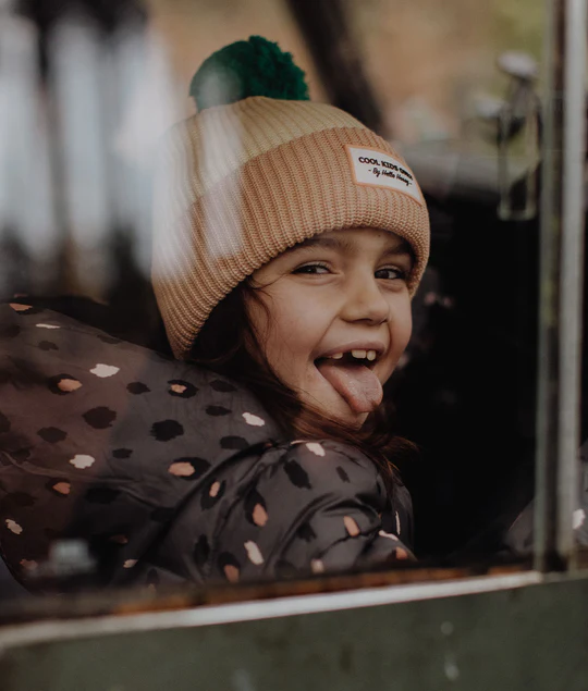Les bonnets Hello Hossy, avec leurs tissus colorés, vont plaire à coup sûr aux petits comme aux grands.