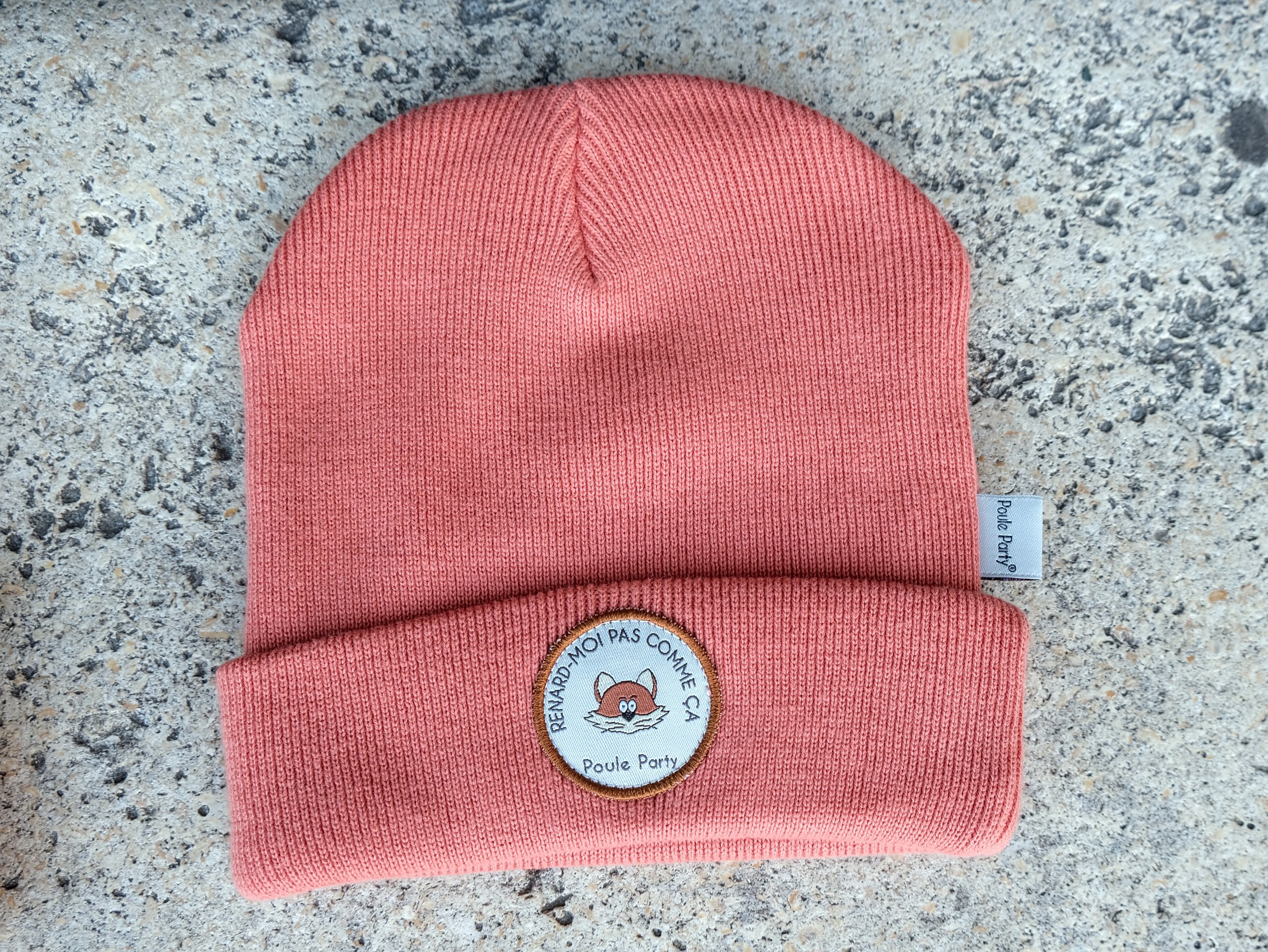 Les bonnets enfants poule party sont confort et stylé. Mais aussi, punchy grâce à sa couleur terracotta et à son jeu de mot : « Renard moi pas comme ça ».