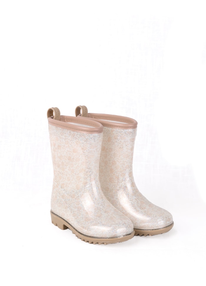 Ces bottes mi-mollet arborent de jolis motifs de bouquets fleuris, agrémentés de paillettes discrètes pour une touche scintillante. Les détails effet cuir et la languette à l’arrière ajoutent une finition soignée tout en facilitant l’enfilage, même pour les petites mains.