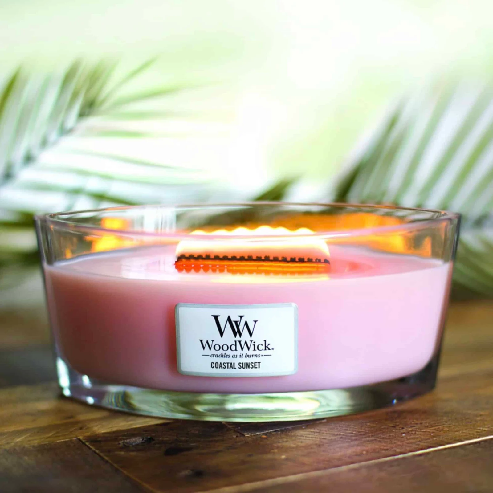 Gamme de Bougies Coucher de Soleil, Woodwick. C’est un parfum floral. Profitez de la lueur chaleureuse de la côte à travers des senteurs nuancées de fleurs ensoleillées, de noix de coco crémeuse et de brise marine. Toutes les jarres comportent les mèches en bois brevetées Pluswick®, tandis que la bougie Ellipse est dotée de la mèche Hearthwick®. Note de tête: Noix de coco pure, Pomme, Agrumes, citron, Mandarine Note de cœur: Baies sucrées, Jasmin, Rose, Lilas, héliotrope, Orchidée vanille, Note de fond: Bois de Cèdre, Tonka, sucre vanillé, Musc La note de tête est celle que l’on perçoit en premier, elle…