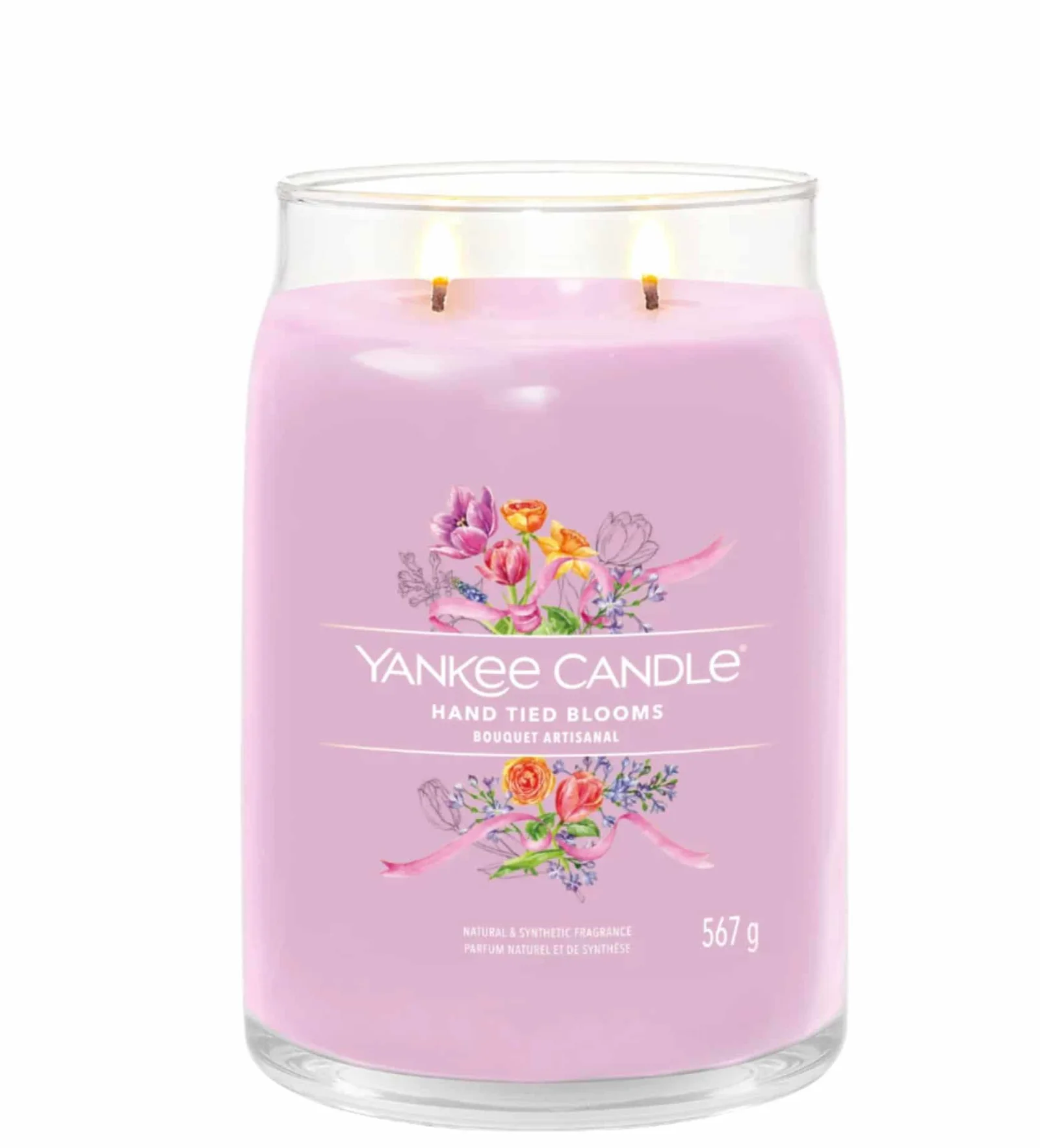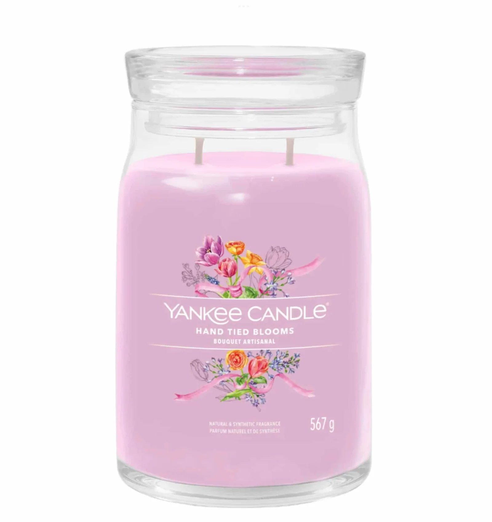 Bougie Signature Bouquet Artisanal . YANKEE CANDLE Les fragrances d’un bouquet confectionné à la main, combinant de magnifiques fleurs printanières pour créer une tapisserie colorée.