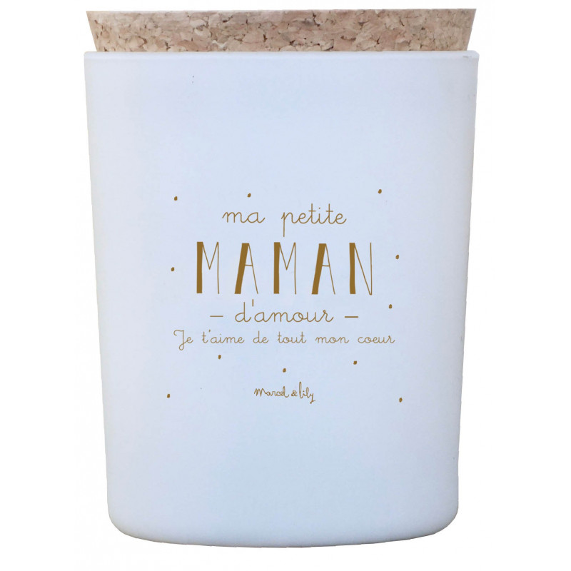 Bougie 100% végétale et fabriquée en France « Maman d’Amour » à la tendre senteur douce et enveloppante de la fleur de coton.