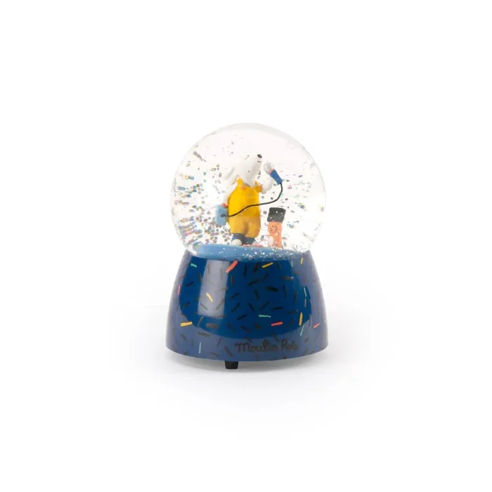 Découvrez la boule à neige musicale Moulin Roty, mettant en scène Pilou en karaoké ! Un objet décoratif et apaisant, qui diffuse une douce mélodie et émerveille les petits dès 3 ans. Voir toute la collection : Puce & Pilou