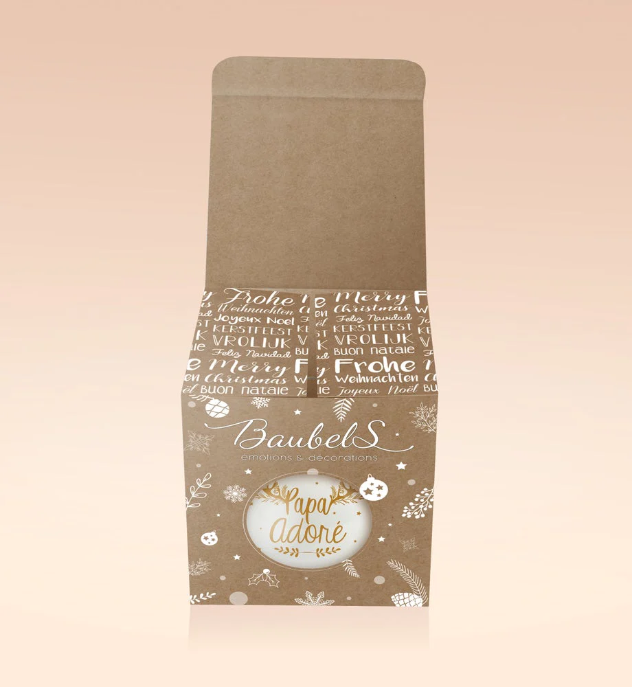 Ma famille est … HAPPY ! La décoration de Noël se fait aussi en famille, de quoi partager des moments heureux et joyeux et mettre en place de jolies traditions ensemble, avec la boule de Noël personnalisée « Happy Family ».