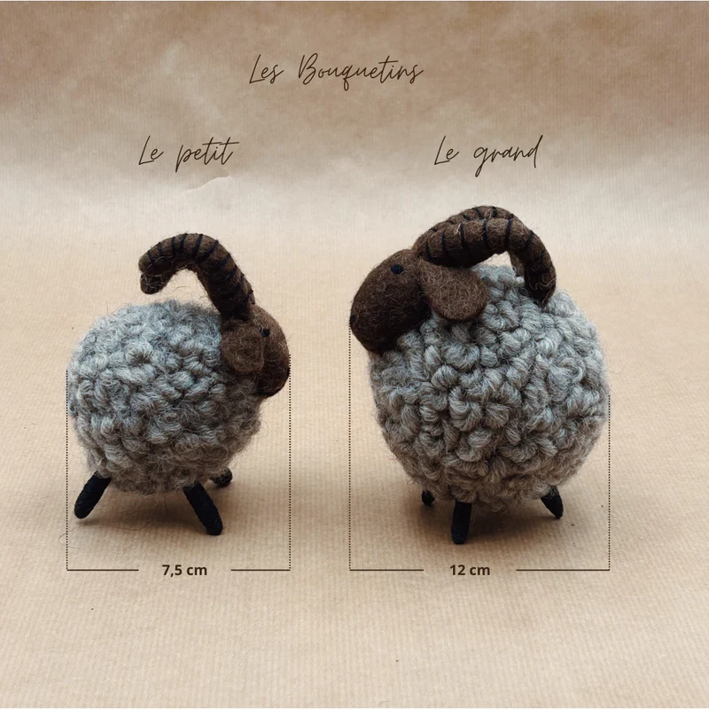 La laine bouillie, matière première de ces créations, est à la fois naturelle, résistante et chaleureuse. Sa texture douce apporte un confort visuel et tactile qui donne immédiatement vie à ces petits animaux de montagne. Et comme ils ne nécessitent aucun entretien particulier, ils resteront beaux et intacts pendant des années.