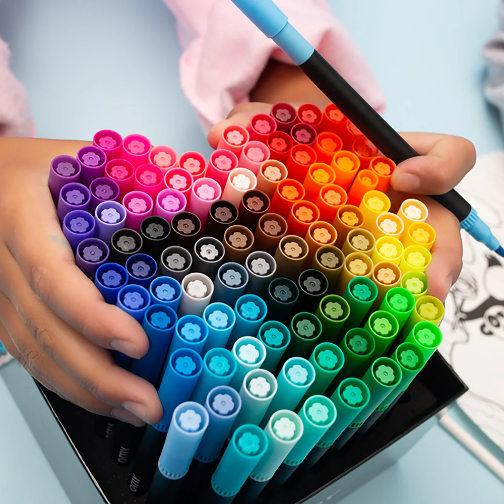 La Box 100 Couleurs OMY est le coffret idéal pour tous les passionnés de dessin, de calligraphie et de loisirs créatifs. Avec ses 100 feutres double pointe, elle ouvre la porte à une infinité de nuances, parfaites pour colorier, décorer et imaginer sans limite.