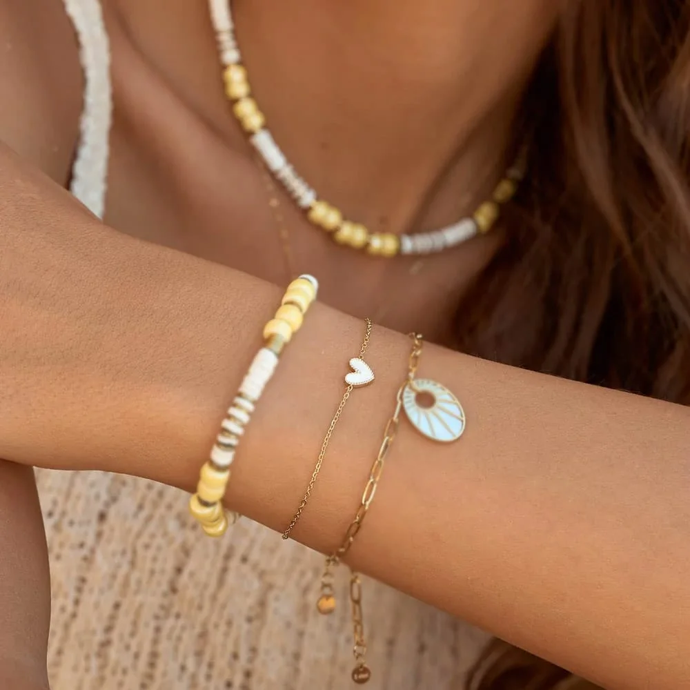 Composition : Bracelet en acier inoxydable composé d’un petit coeur en émail.