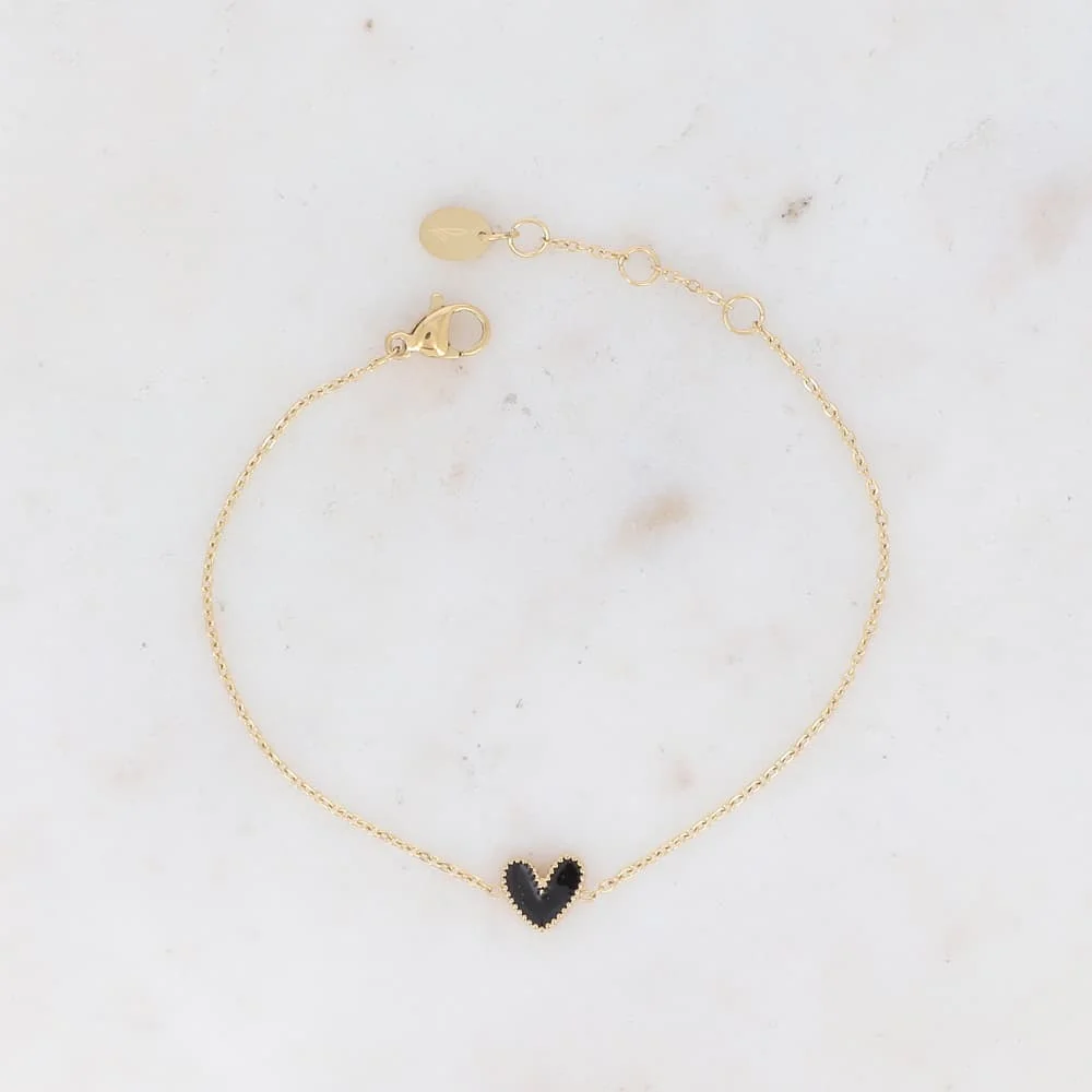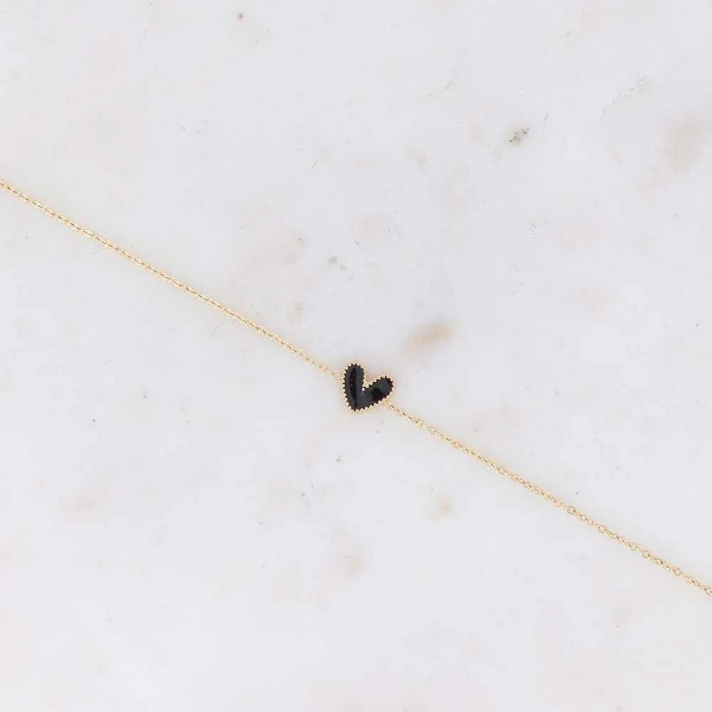 Bracelet Coeur Noir Un joli bracelet fin en chaîne dorée avec son petit coeur noir sauge pour déclarer votre amour !