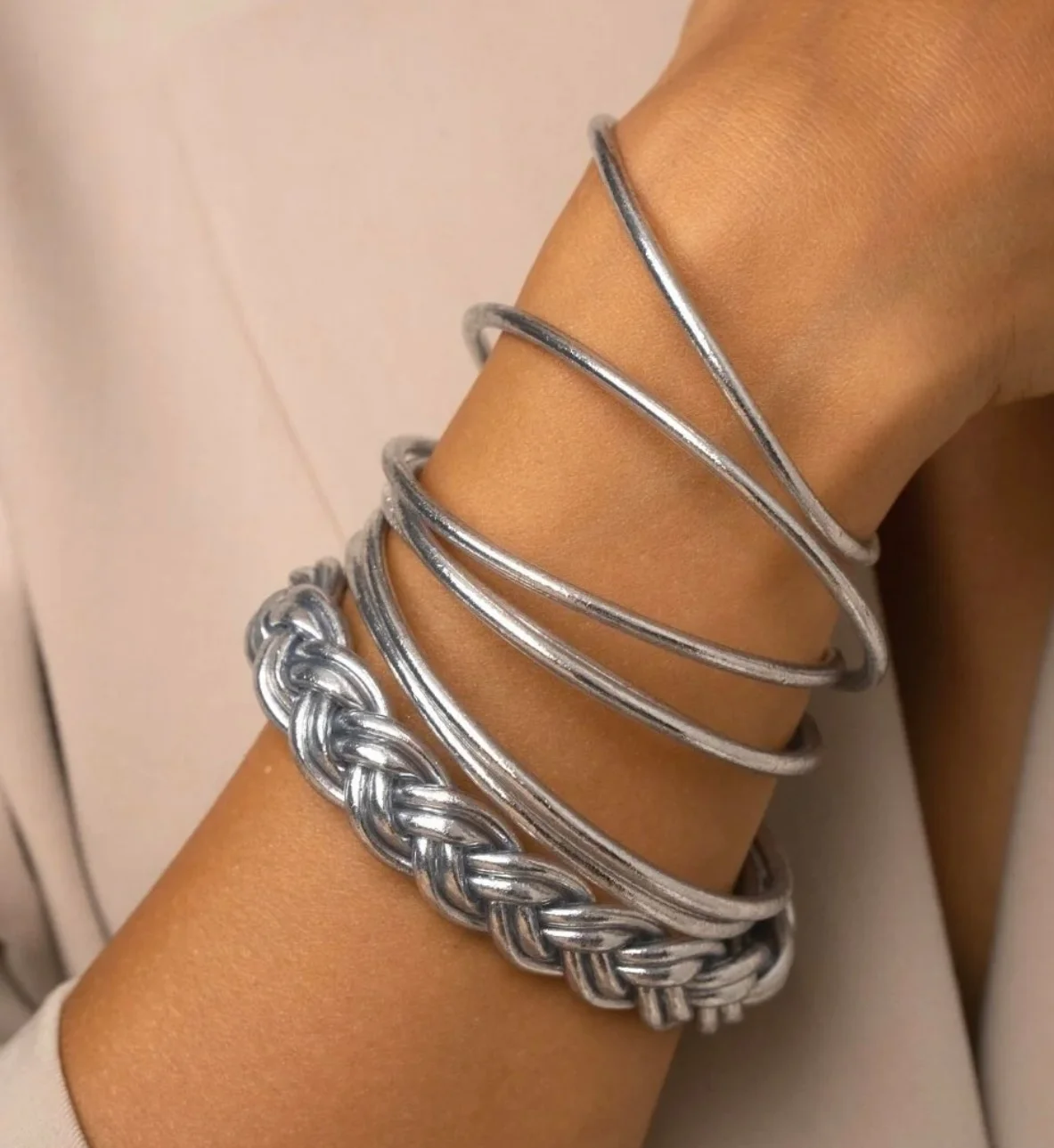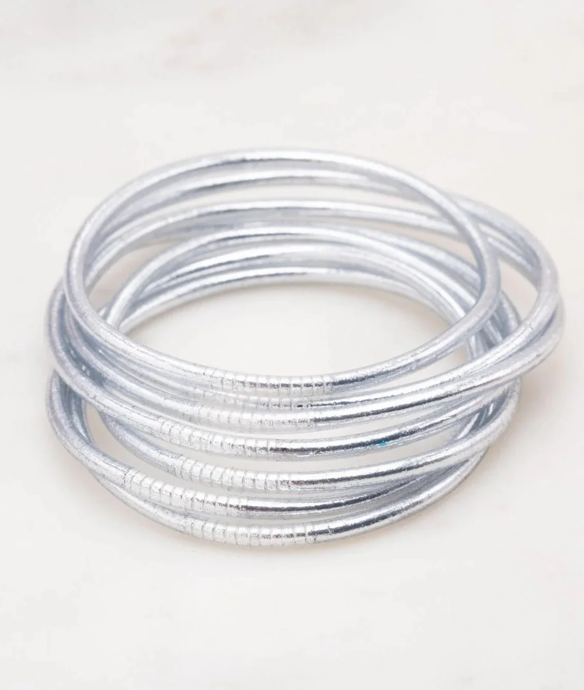 L’eau savonneuse permet aussi de les enfiler et enlèvera également l’excès de paillette qui pourrait se trouver sur le bracelet. - Astuce pour leur redonner une forme ronde :Chauffer légèrement les bracelets au sèche cheveux pour les détendre ou les passer sous l’eau chaude.
