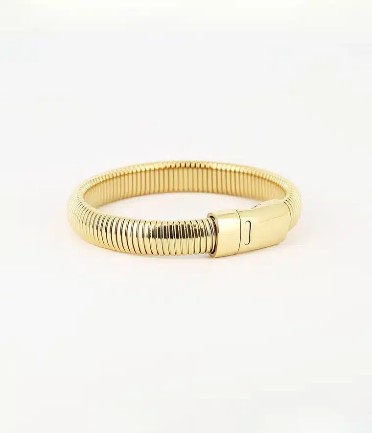 Bracelet jonc Naja en acier inoxydable 316L, doré ou argenté, résistant à l’eau et hypoallergénique. Un essentiel intemporel au design raffiné.