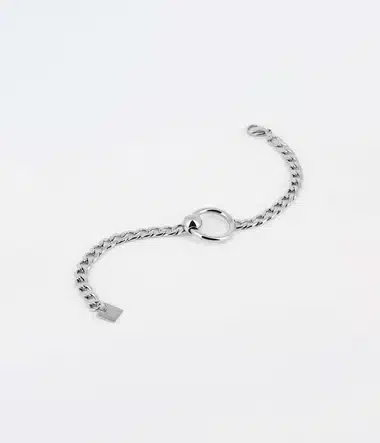 Ce bijou est un bracelet constitué de maillons en acier inoxydable, disponible en version unie ou dorée à l’or fin.