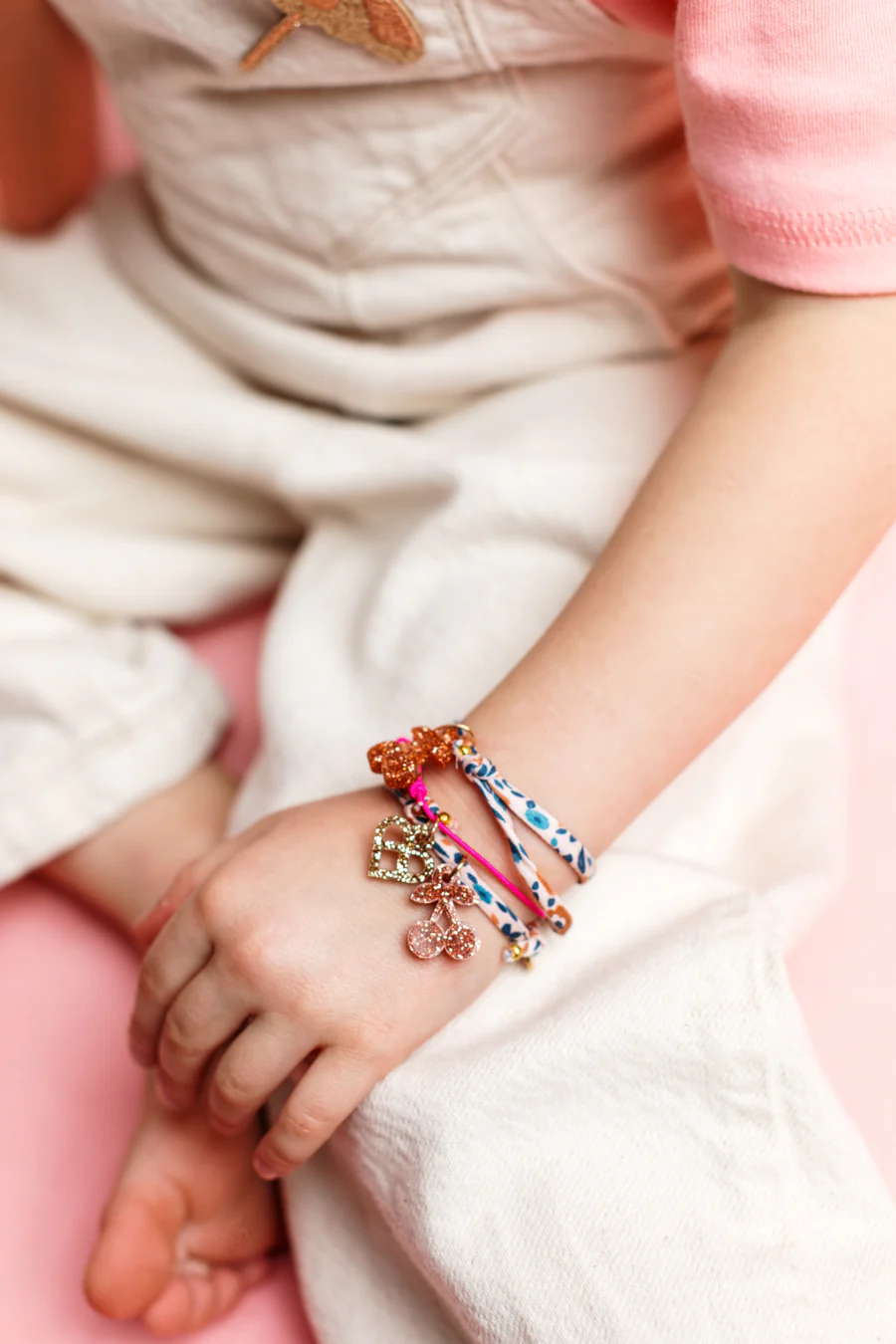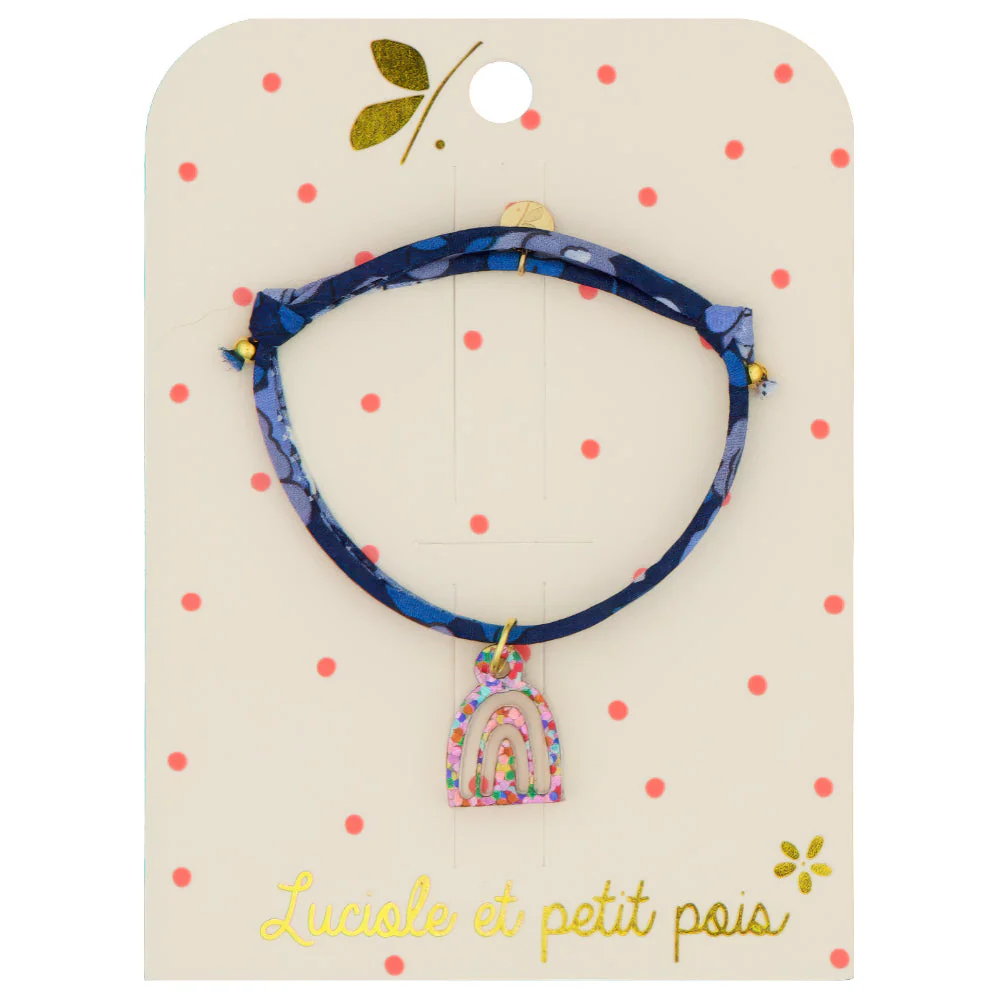 Avec son cordon en Liberty Betsy Meadow Bleu scintillant orné d’un arc-en-ciel multicolore, ce bracelet ravira le cœur des petites demoiselles !