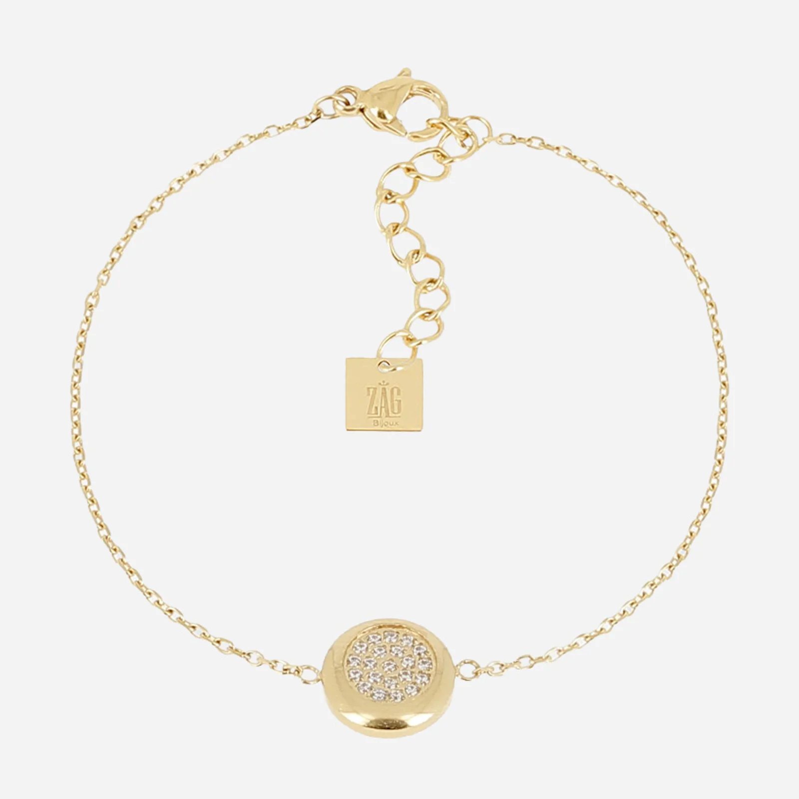 Le bracelet simple en acier doré de ZAG Paris est un bijou élégant et intemporel, orné de zirconiums sertis qui apportent une touche de brillance subtile. Ce bracelet épuré, avec sa chaîne ajustable (15+3 cm), s’adapte à tous les poignets, offrant confort et élégance au quotidien. Sa simplicité le rend parfait pour ajouter un éclat discret à vos tenues, que ce soit pour une sortie décontractée ou un événement spécial.