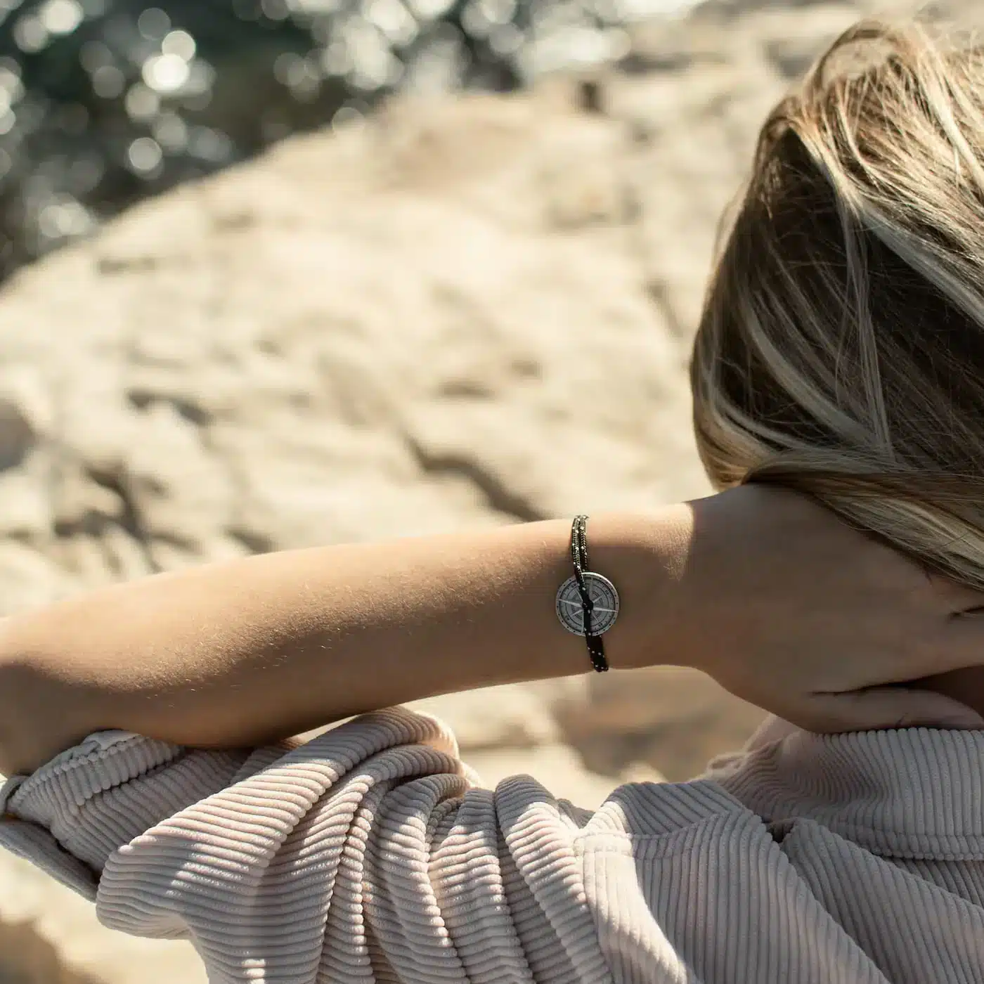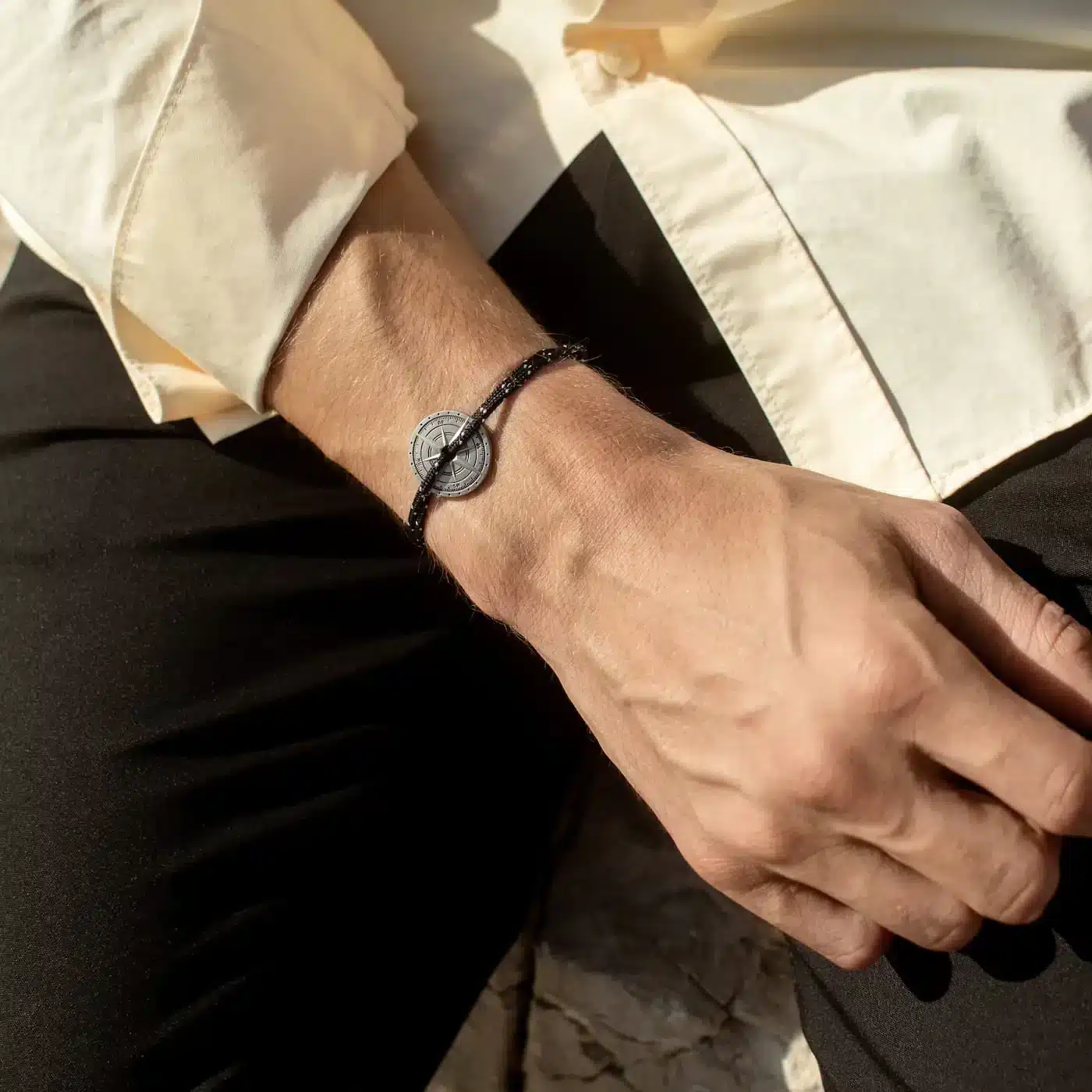 Bracelet Vieilli TempĂȘte Noir et Blanc, Rose des Vents